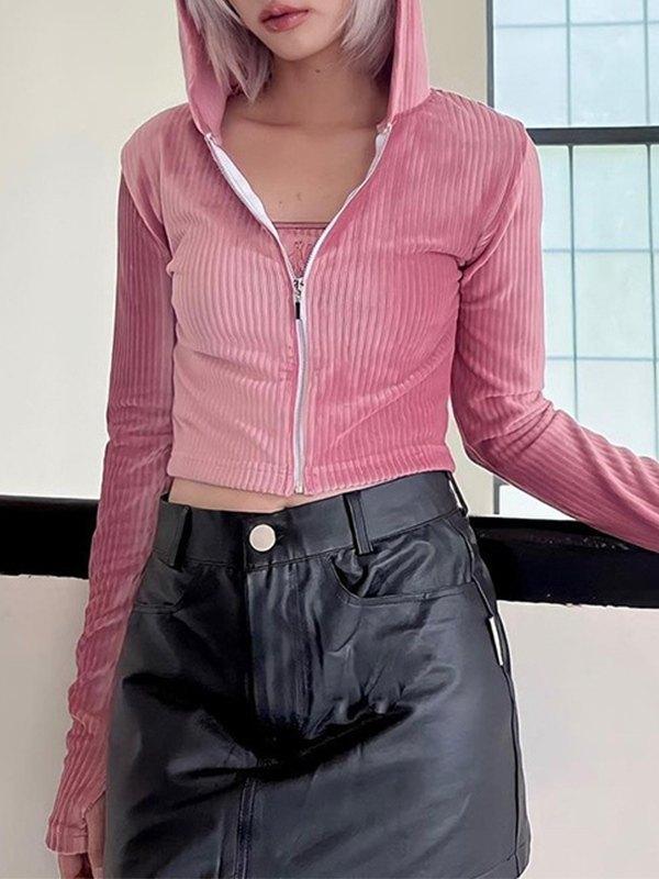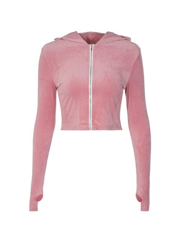 Solid Velvet Zip Up Hoodie & Flap Pocket Pants Set