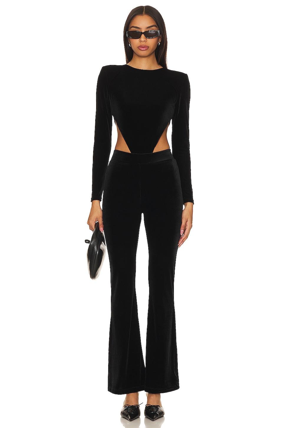 Self: 90% polyester, 10% spandexContrast: 72% nylon, 28% spandex. Made in China. Machine wash. Elastic waistband. Stretch fit. Velveteen finish. 12" at the knee breaks to 19" at the leg opening. Revolve Style No. CMAN-WP121. Manufacturer Style No. SLG80.