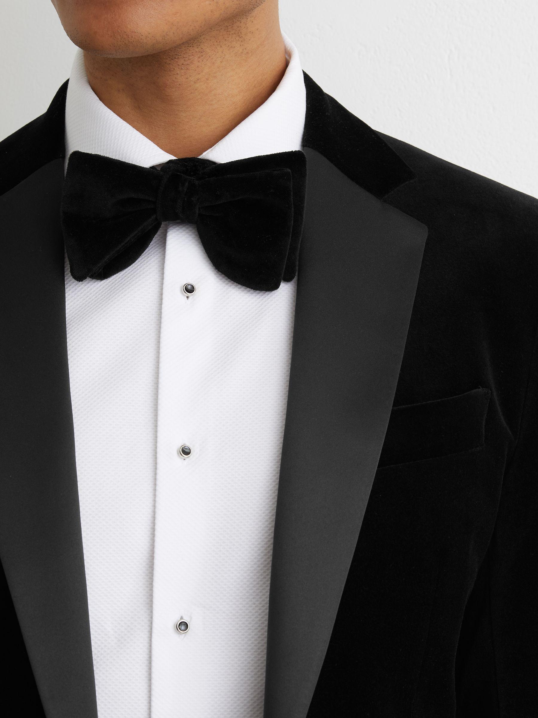 The Ace velvet blazer is the party piece that will earn you sartorial points season-after-season. Finished with traditional details such as a single-breasted silhouette and contrasting satin trim, its versatile colourway and sumptuous texture combine to make a truly timeless garment. Style it with a dress shirt, bow tie, tuxedo trousers and patent shoes for classic evening style. Satin notch lapels. Single-button fastening. Jetted pocket at each hip. Buttoned cuffs. Double vent to reverse. Velvet fabrication. Fully lined. Measurements of model: 6ft 2"" / 188cm. The model is wearing a size 38.