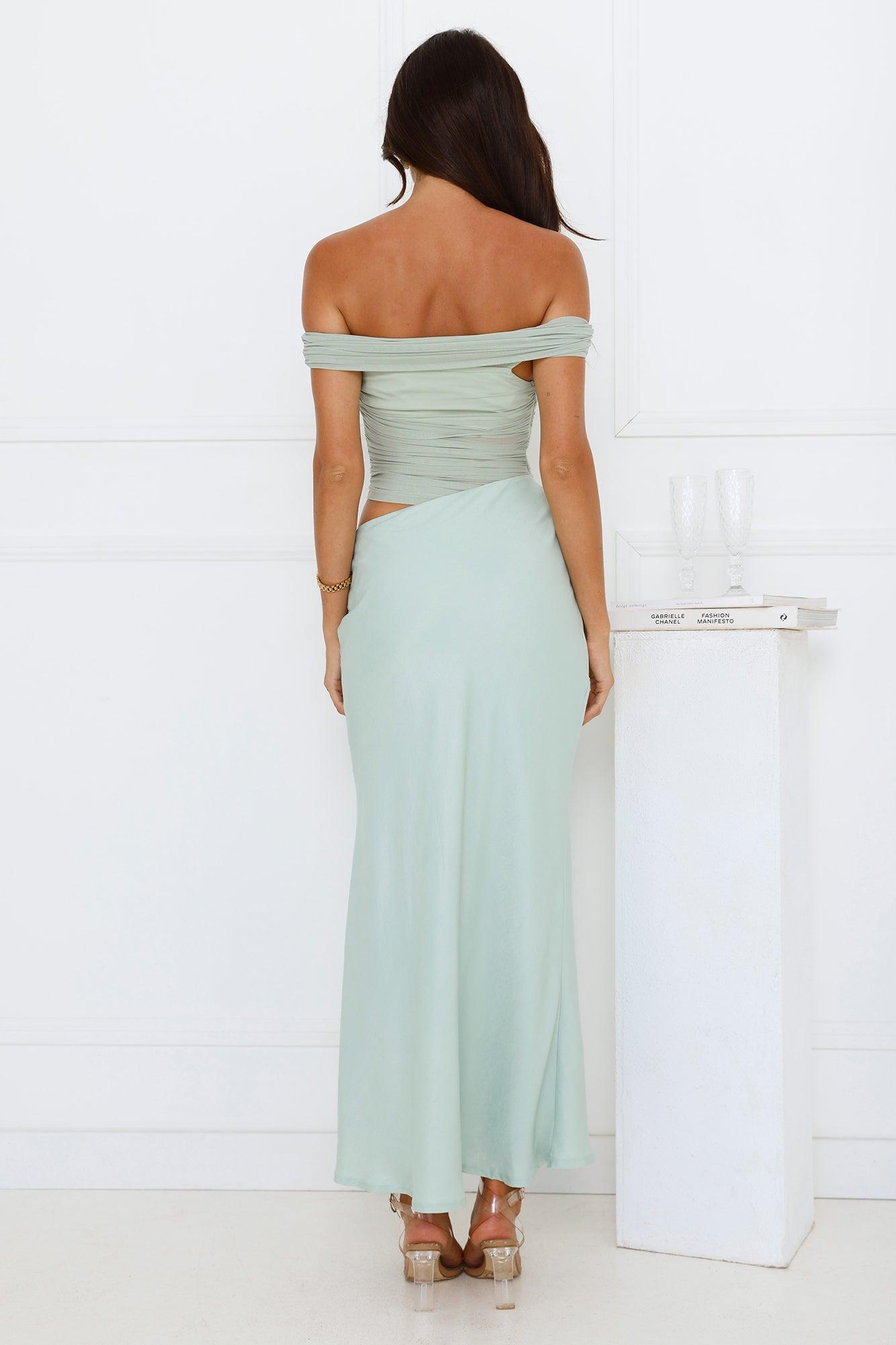 Velvet Sky Off Shoulder Mesh Maxi Dress Sage