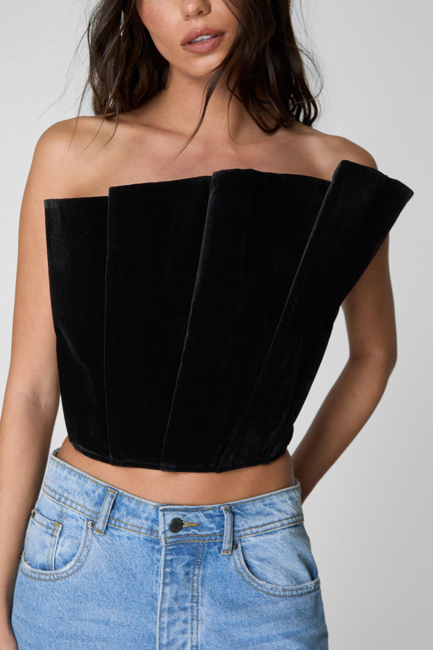 We caught you looking at our Velvet Structured Fan Bandeau Top. Click this way to shop your new favorite. Best dressed- secured.