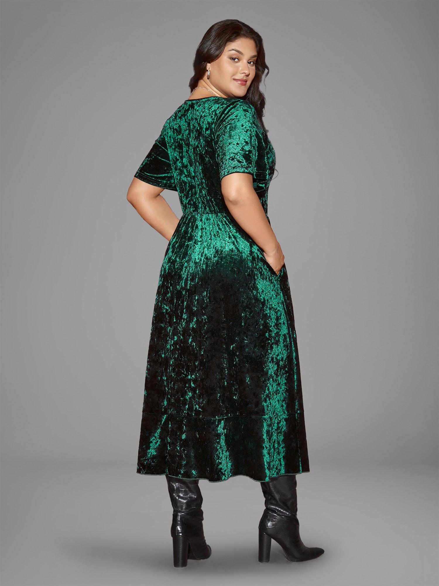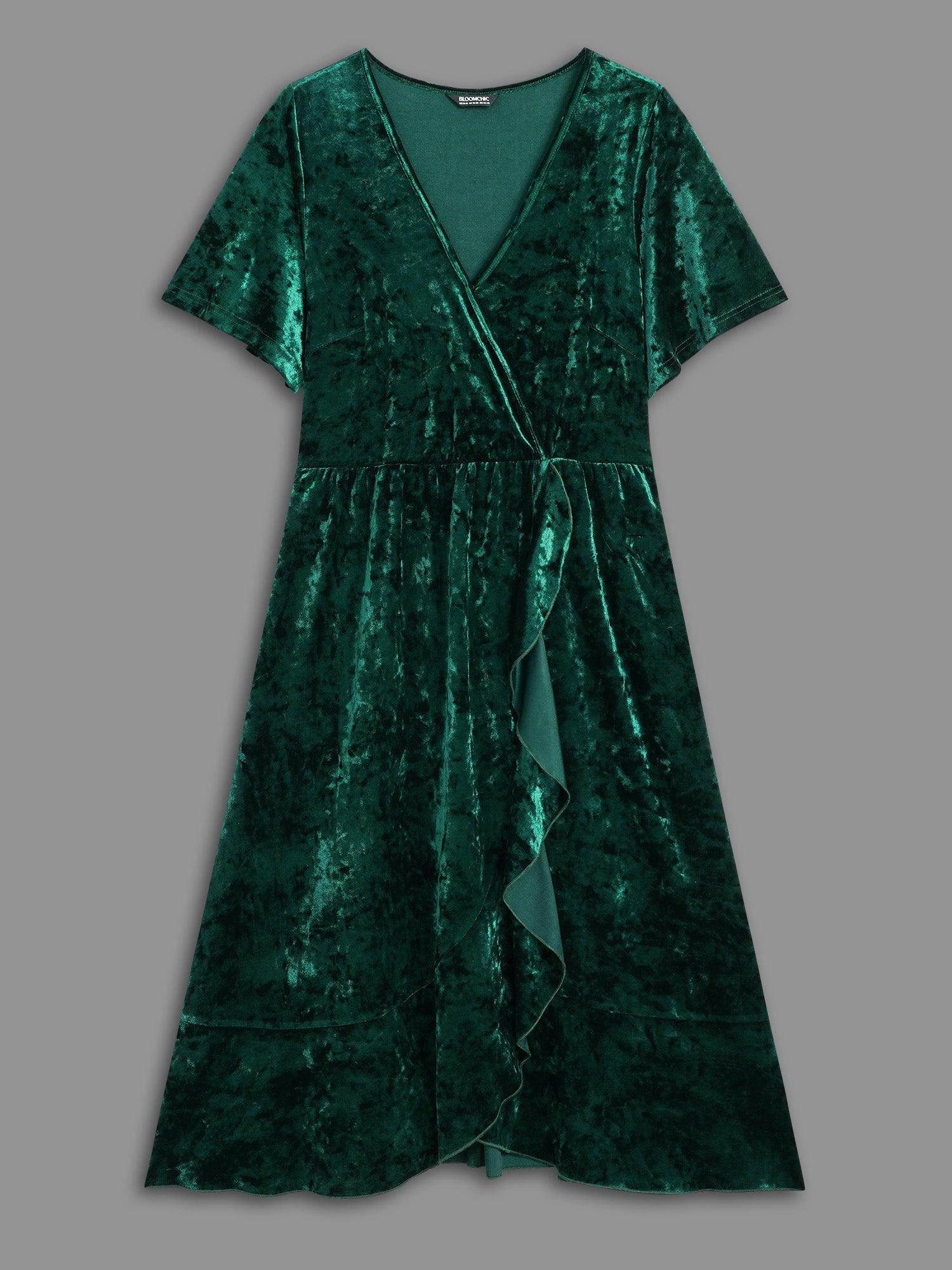 Velvet Surplice Neckline Ruffle Sleeves Midi Dress Female
