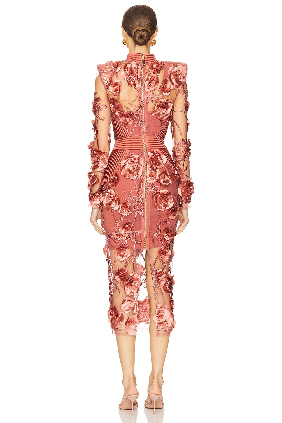 95% polyester, 5% elastane. Hand wash cold. Partially lined. Back zipper closure. Padded shoulders. Contrast ribbing at waist and collar. Midweight tulle fabric with 3D floral detailing and embroidery throughout. Made in China. Revolve Style No. ZHIR-WD358. Manufacturer Style No. 972.