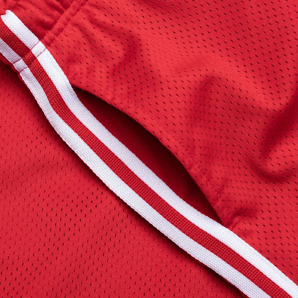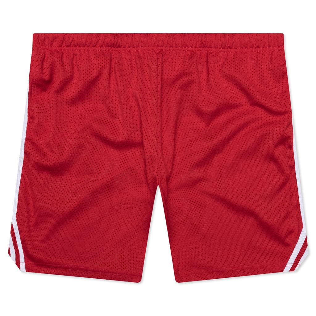 The Gallery Dept. Venice Court Shorts deliver a modern update to a classic athletic silhouette. Made from breathable mesh jersey, they feature a slightly shorter 8.25" inseam for a contemporary fit. The balloon shape offers relaxed comfort, while the elastic waistband with inner drawstring ensures a secure feel. The shorts are finished with front slip pockets, white striped piping, and the GD ENGLISH logotype at the front. They are double-lined for added structure and durability. Made in the USA. 100% Polyester Breathable mesh 8.25" inseam GD ENGLISH Logotype Balloon fit Elastic waistband Interior drawstring Side seam pockets Striped piping Double-lined Style No: VCS-5245-RED VCS 5245 RED