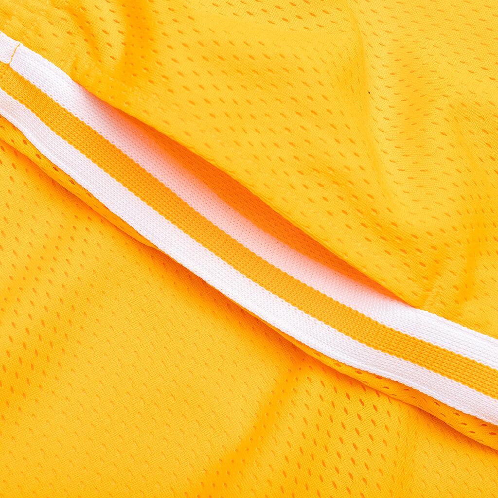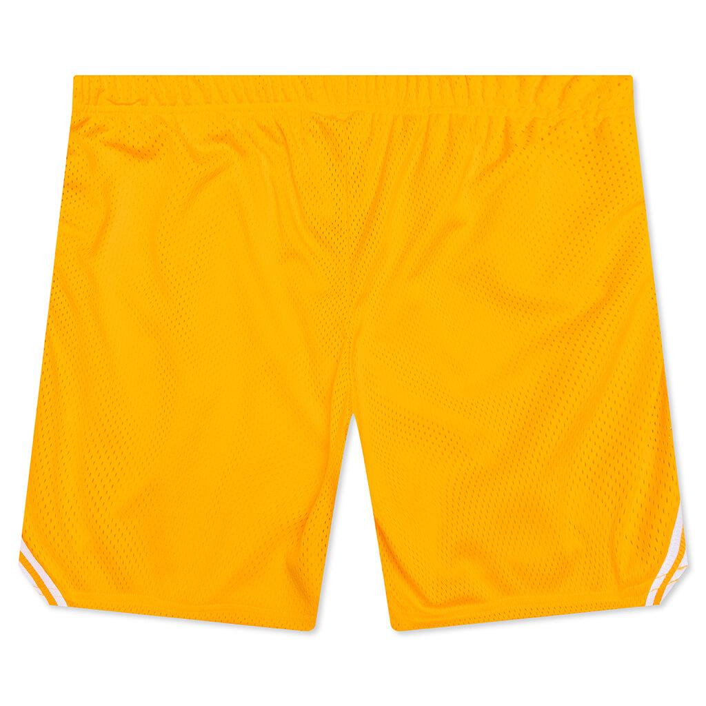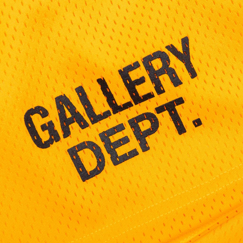 The Gallery Dept. Venice Court Shorts deliver a modern update to a classic athletic silhouette. Made from breathable mesh jersey, they feature a slightly shorter 8.25" inseam for a contemporary fit. The balloon shape offers relaxed comfort, while the elastic waistband with inner drawstring ensures a secure feel. The shorts are finished with front slip pockets, white striped piping, and the GD ENGLISH logotype at the front. They are double-lined for added structure and durability. Made in the USA. 100% Polyester Breathable mesh 8.25" inseam GD ENGLISH Logotype Balloon fit Elastic waistband Interior drawstring Side seam pockets Striped piping Double-lined Style No: VCS-5245-YLLW VCS 5245 YELL