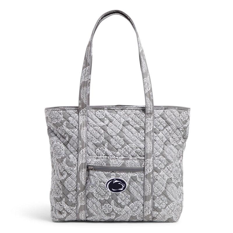 This tote is large enough for the commute to the office with enough pockets to keep your protein bars separate from your pens. Official Collegiate Licensed Product Exterior features a front slip pocket, a zip pocket and a hidden top pocket Interior features six slip pockets Zip closure. Vera Bradley Collegiate Tote Bag Women in Gray/White Bandana with University of Michigan Logo