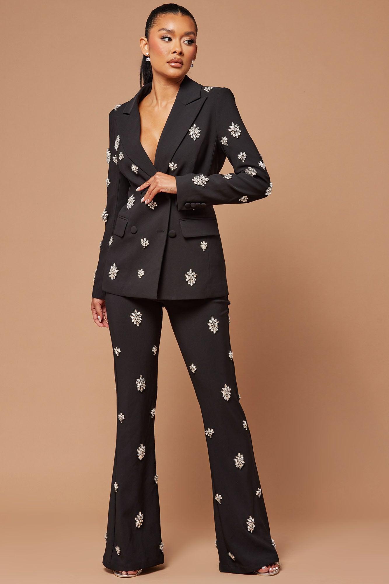 Available In Black, Mocha And White. Embellished Jacket Lapel Collar Long Sleeve Button Closure Front Pockets Lined Non Stretch Disclaimer: Rhinestone Placement Will Vary Self: 95% Polyester 5% Spandex Lining: 100% Polyester Imported California Proposition 65WARNING: Cancer and Reproductive Harm - www.P65Warnings.ca.gov.