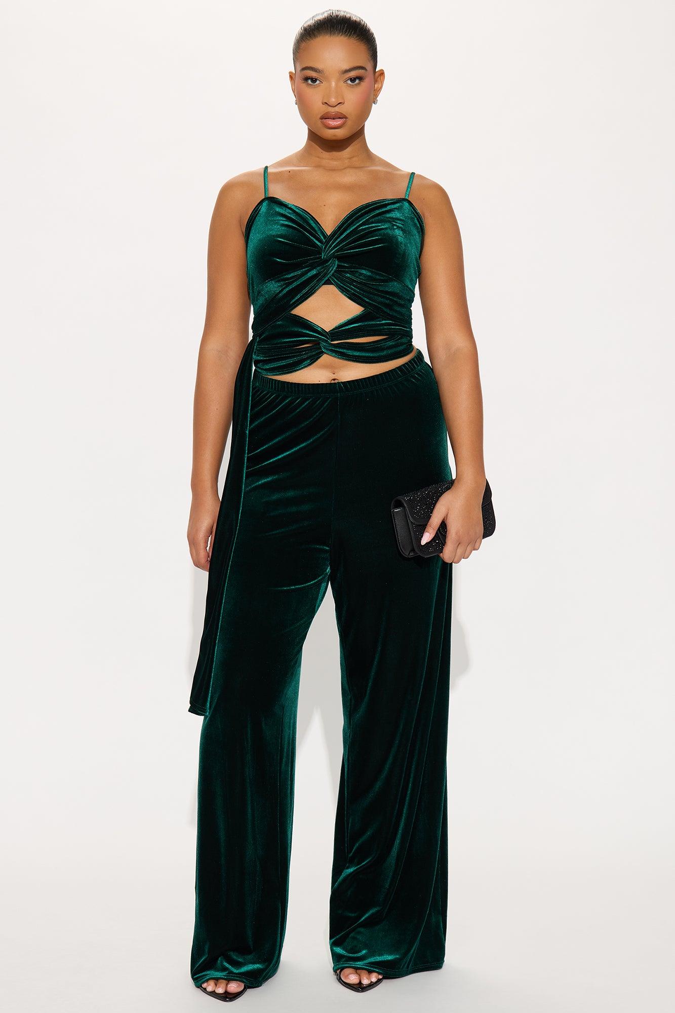 Available In Hunter. 2 Piece Ensemble Tank Top And Wide Leg Pant Stretch 33.5" Inseam Adjustable Straps Elastic Waistband Self : 92% Polyester 8% Spandex Imported California Proposition 65WARNING: Cancer and Reproductive Harm - www.P65Warnings.ca.gov.