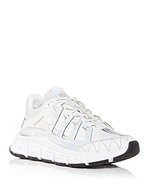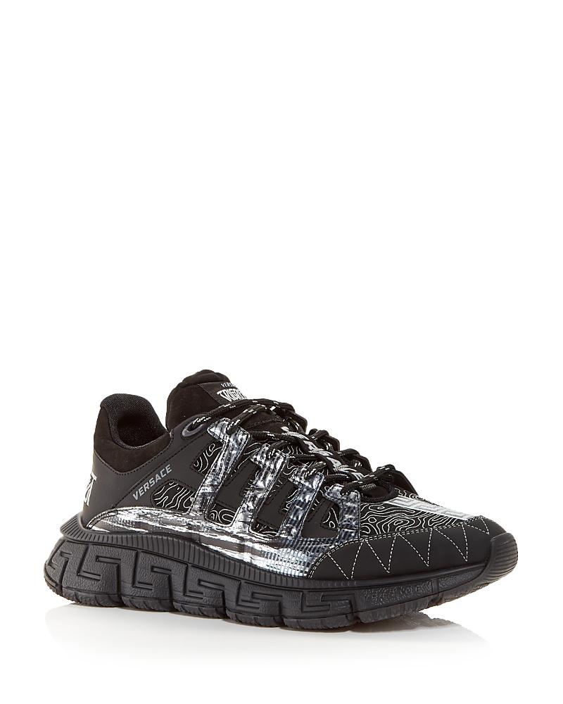 The latest addition to Versaces coveted sneaker family with Baroque accents, the Trigreca brings innovation to the brands ever-evolving aesthetic. Referencing Versace DNA, the Trigreca features three prominent Greca executions: the midsole lateral, medial, and the bottom of the outsole. This combination creates the Greca Cushioning System. Leather upper Round toe Lace-up vamp Lining: Leather Rubber sole Made in Italy ABOUT THE BRAND Founded in 1978, Versace is instantly recognizable by the signature Medusa head logo, chosen by founder Gianni Versace for its Greek symbolism. The Italian label is known for its luxe, bold clothing, sneakers, shoes and accessories-think gilding, oversized logos and punchy prints. Since taking over artistic direction, Giannis sister Donatella Versace has maintained the brands strong identity, with a renewed vision to give customers the ultimate freedom to express themselves. Mens Shoes - Designer Shoes > Versace > Saks Fifth Avenue > Barneys. Versace. Color: Nero Oro. Size: 6.