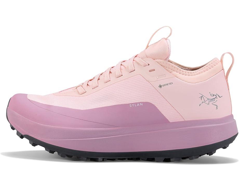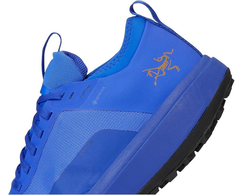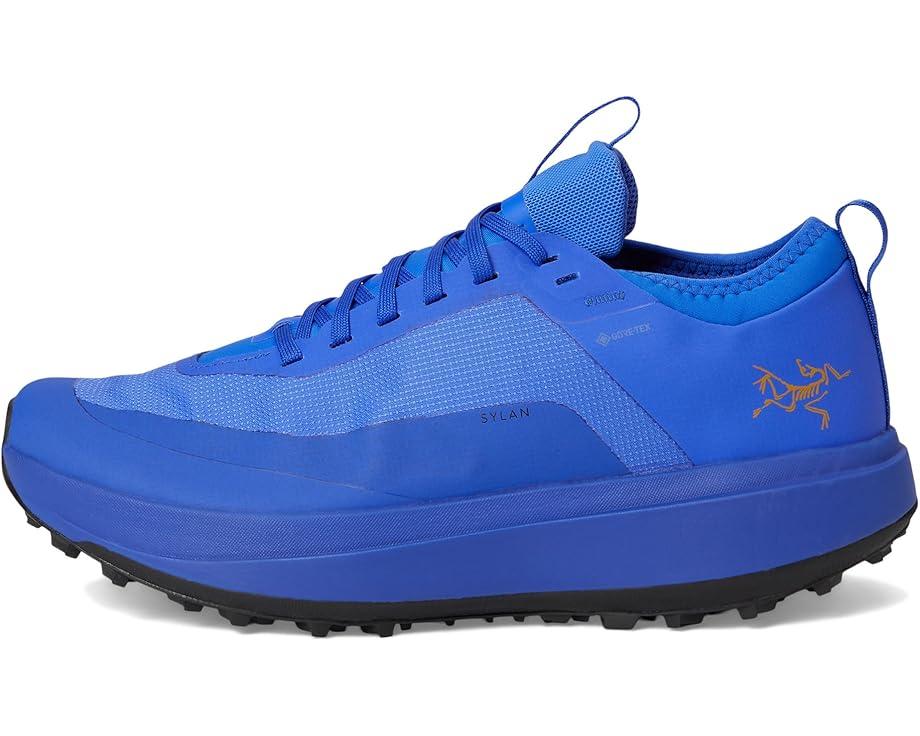 Conquer the mountains and summits by wearing the strong Arc'teryx® Sylan GTX shoes. This durable, low-top pair has a capped toe with a waterproof feature for running on wet terrain. The lace-up shoes have a Goretex® membrane polyester upper, neoprene collar lining, an EVA foam removable footbed, and a dual-density EVA foam midsole. The flat-heeled shoes have a convenient pull tab at the back.