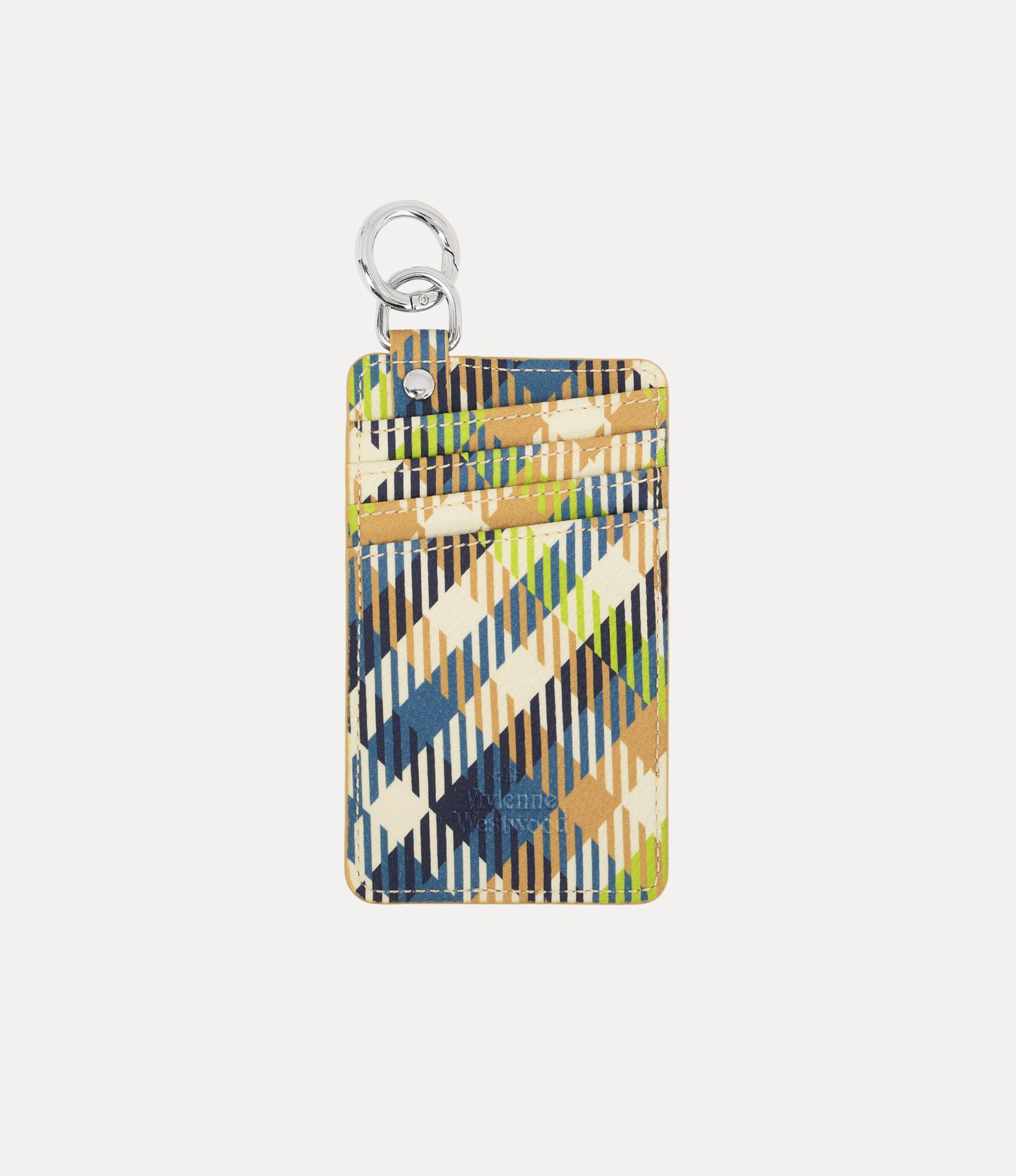 Our card holder is adorned with this season’s vibrant ‘Woven Tartan’ motif, influenced by traditional Scottish Highland regalia. Accented with a fluorescent green orb motif at the front, the style features a sleek vertical profile with multiple card slots on both sides.