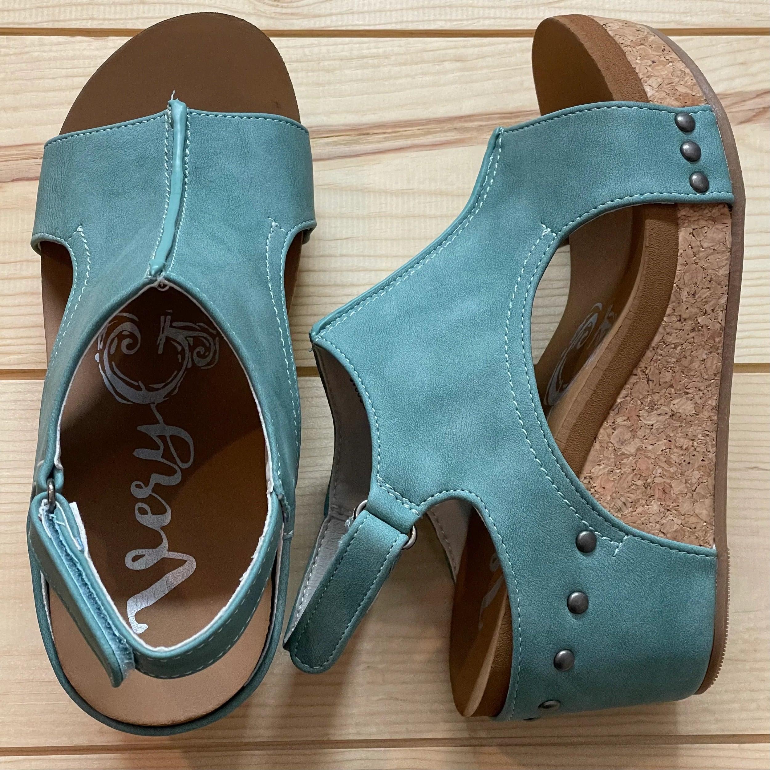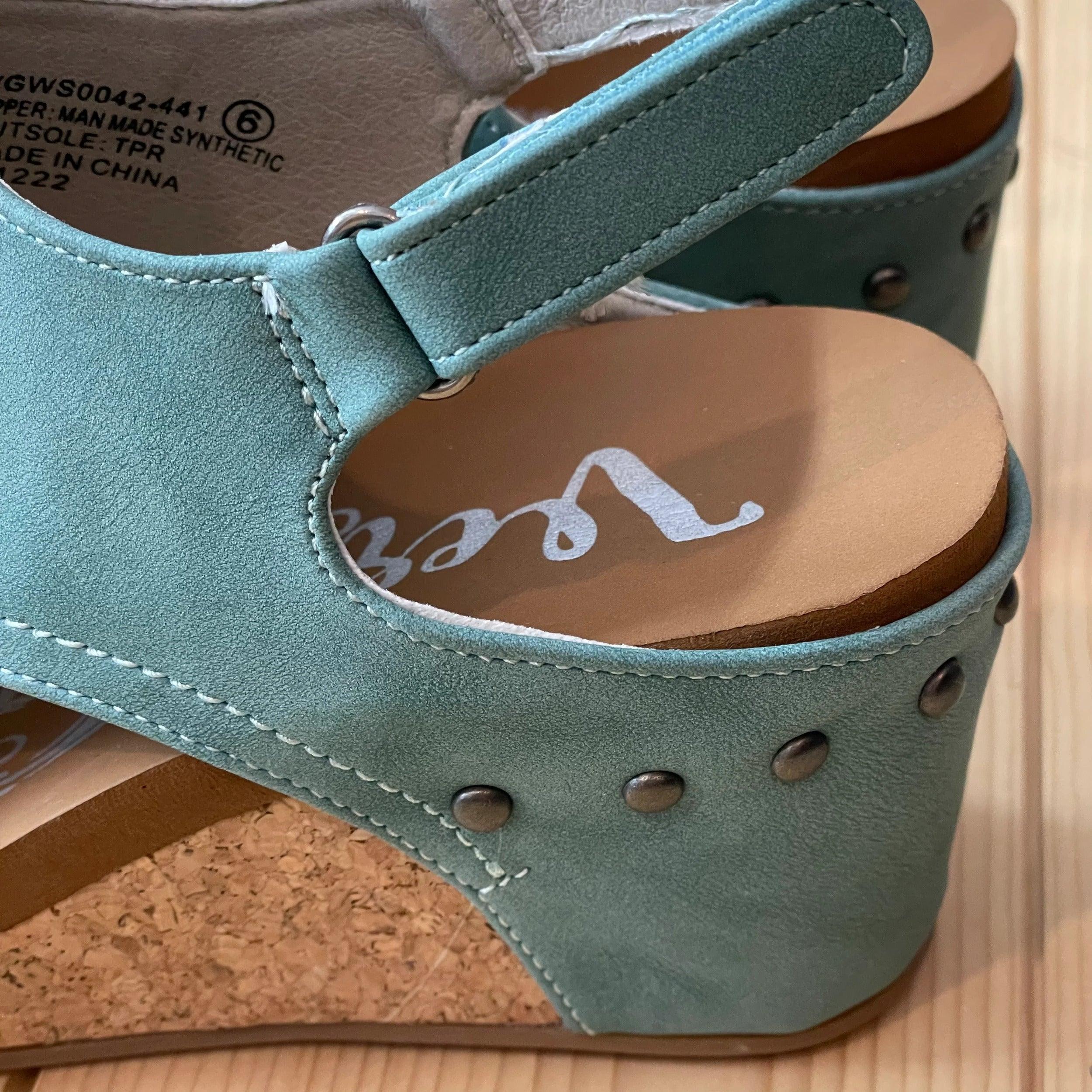 Come on SPRING!!! Girl, these wedges are going to be your go-to with ALL your outfits! I know you've heard me say it over and over, but turquoise literally goes with EVERYTHING!!! Don't miss out on these great shoes from Very G and Gypsy Jazz! Very G Turquoise Liberty Wedge Sandals VGWS0042 These iconic boutique wedges from Very G are must-have! Wear all spring/summer to add a little sass to your wardrobe. Style Name: Liberty Color: Turquoise Cushioned Footbed, Memory Foam Durable Textured Outsole True to size NOTE: SHOES SHIP WITHOUT BOXES TO SAVE ON SHIPPING!