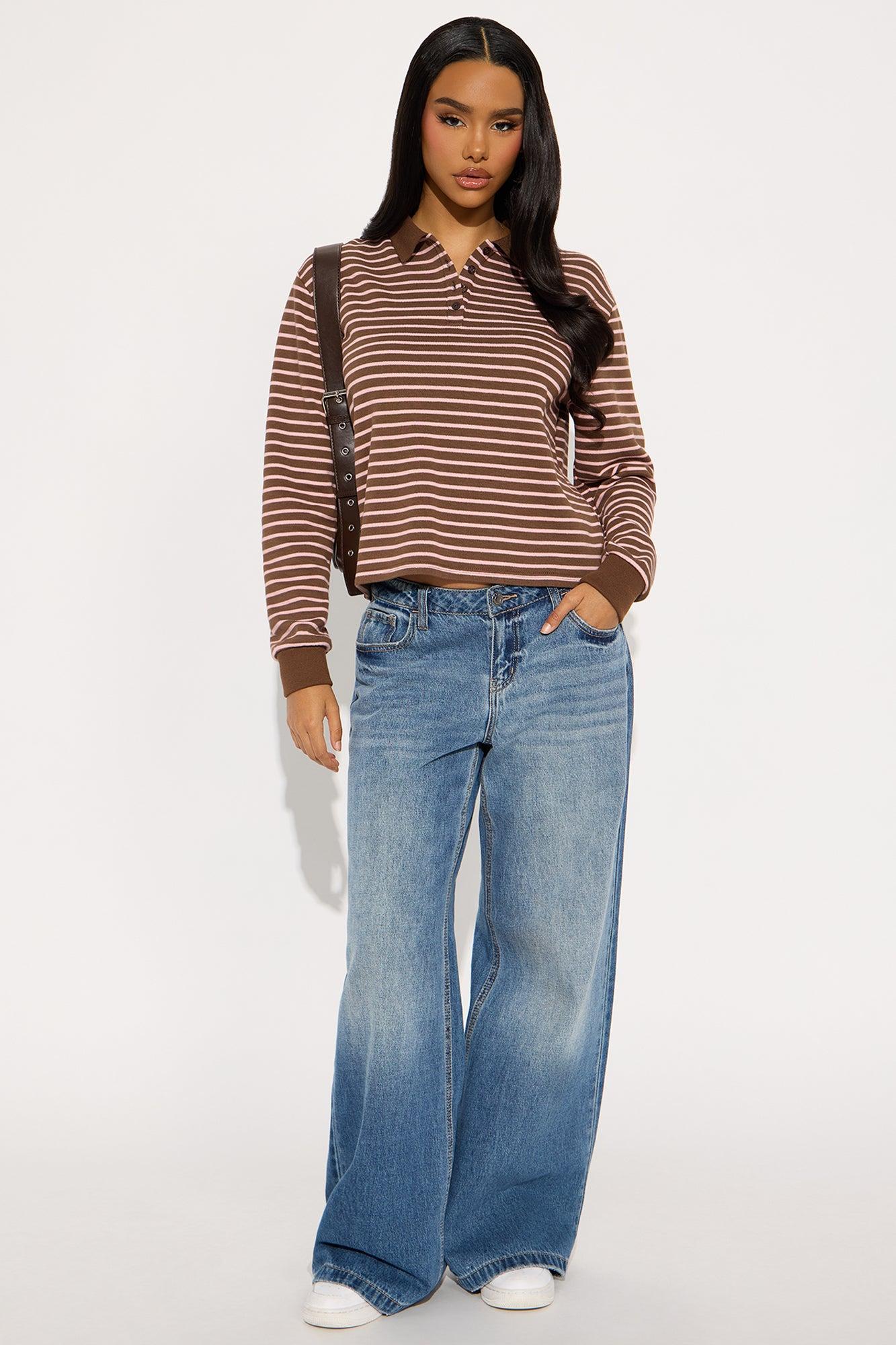 Vesta Striped Long Sleeve Polo Top - Brown/combo Female