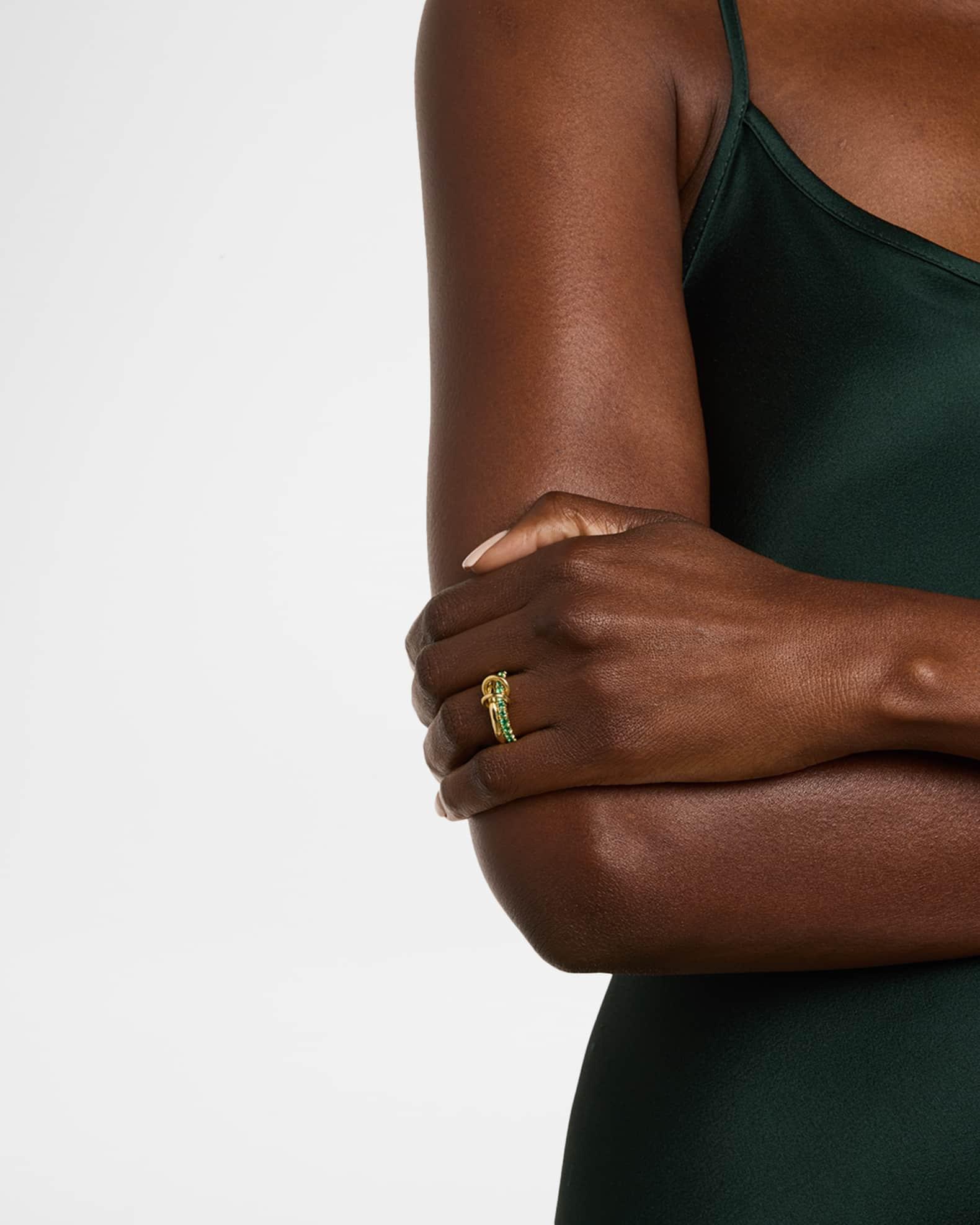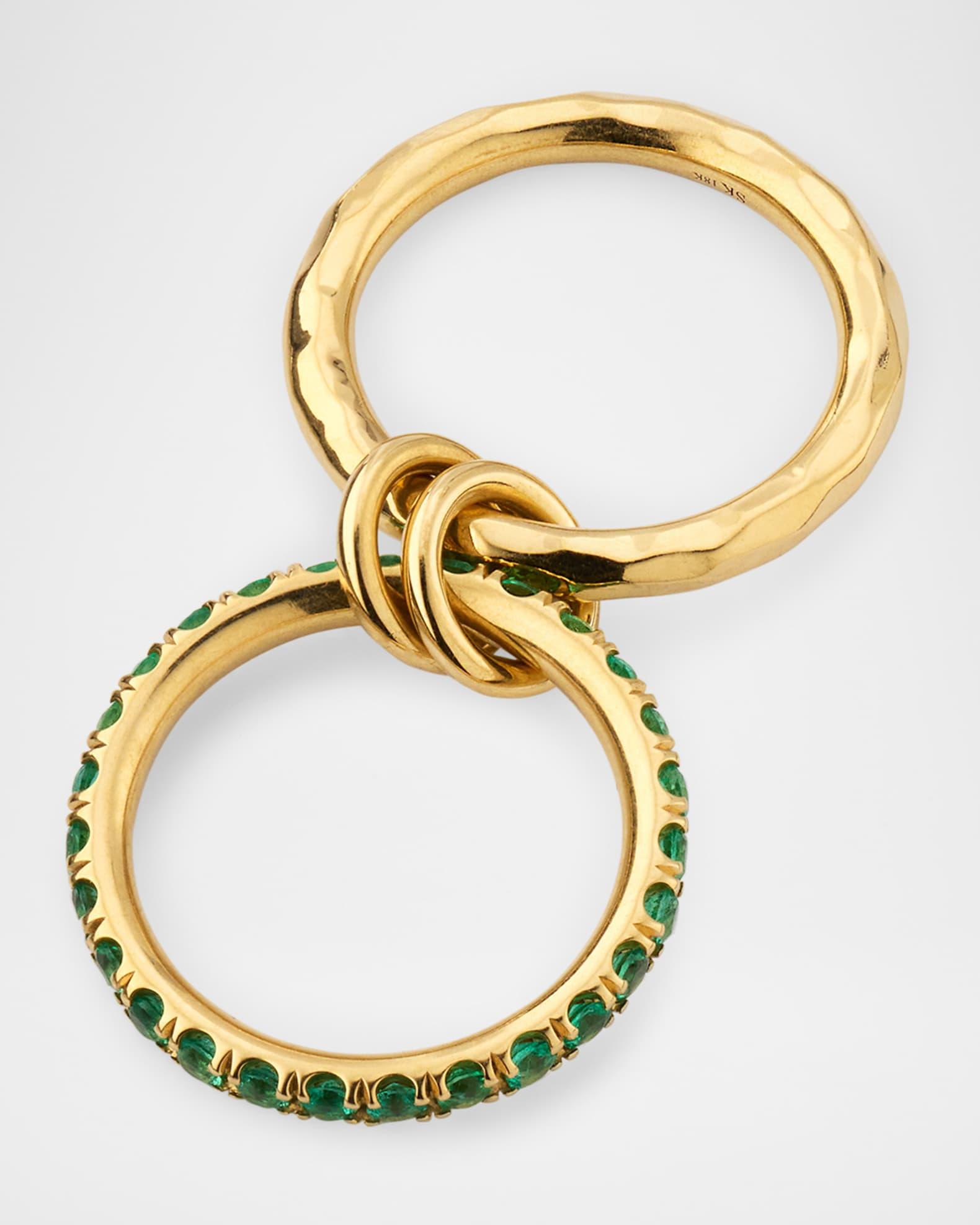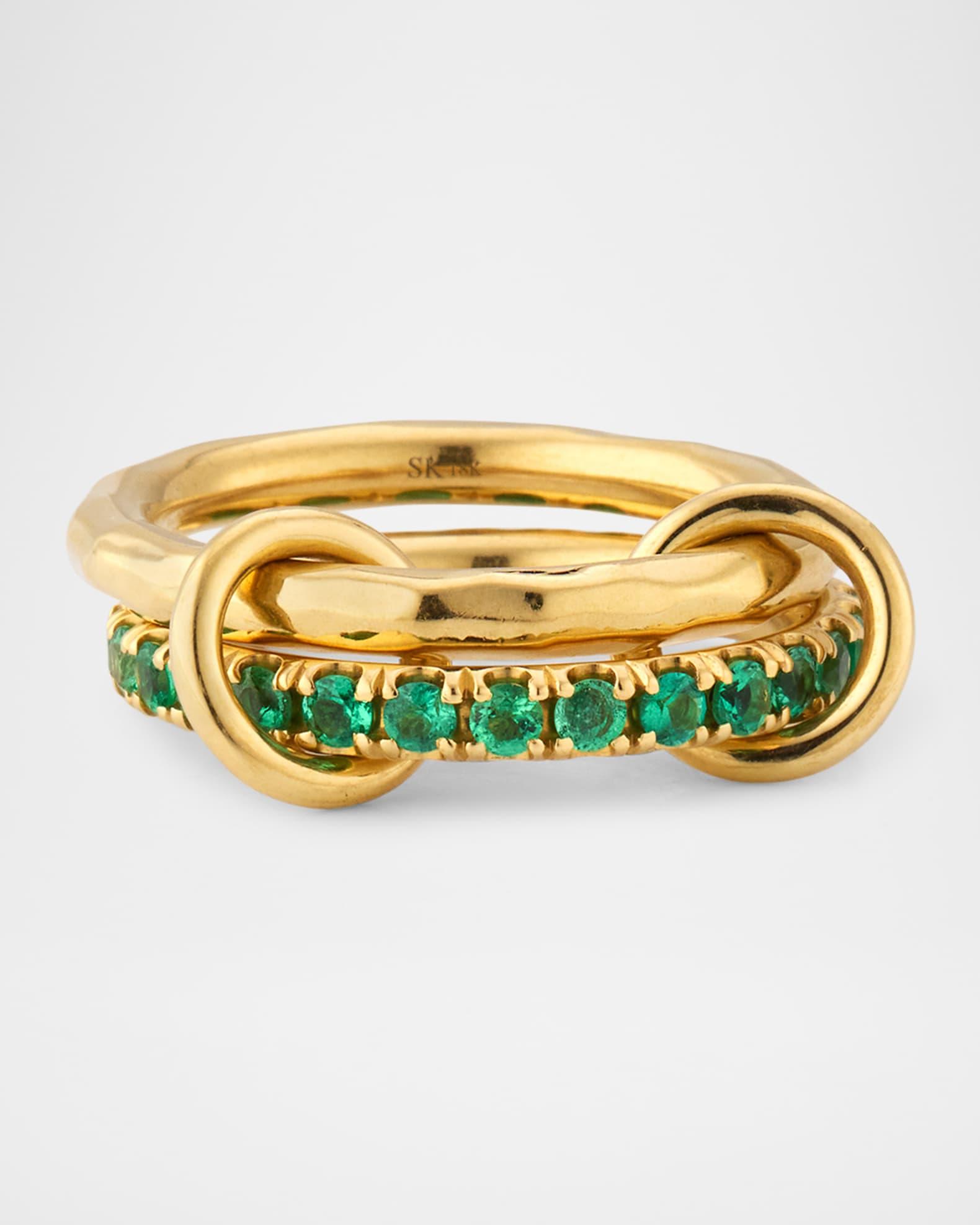 Spinelli Kilcollin rings are crafted with bands, annulets, and connectors. Two yellow gold links comprise the Vetra Vulcan, featuring emeralds for a dynamic design. 18-karat yellow gold 1.10 total emerald carat weight Professional cleaning recommended Made in USA