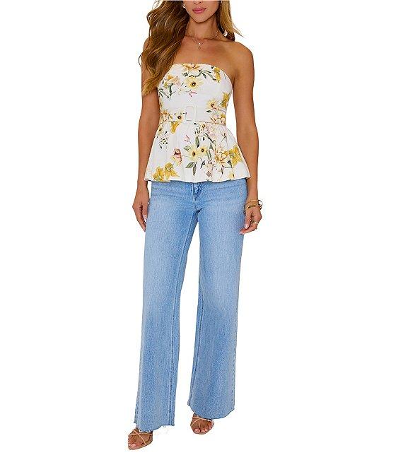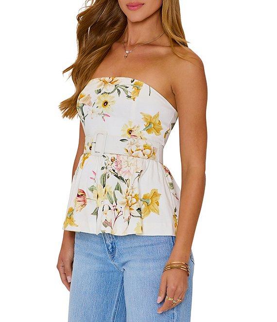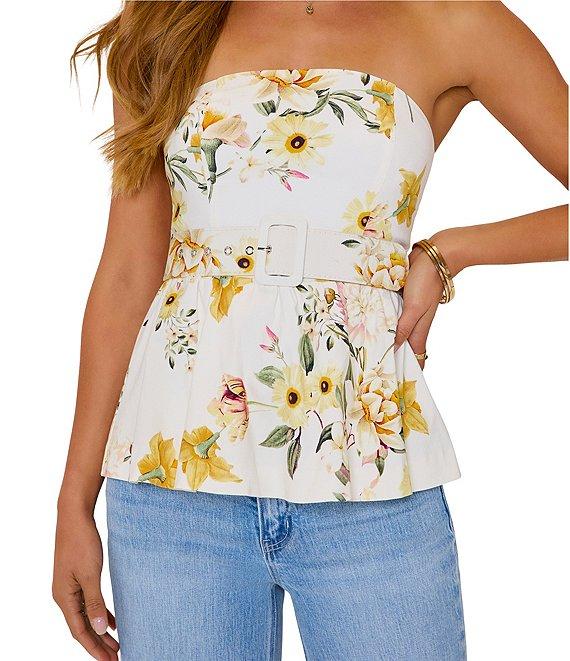VICI Collection Coordinating Belted Floral Peplum Tube Top