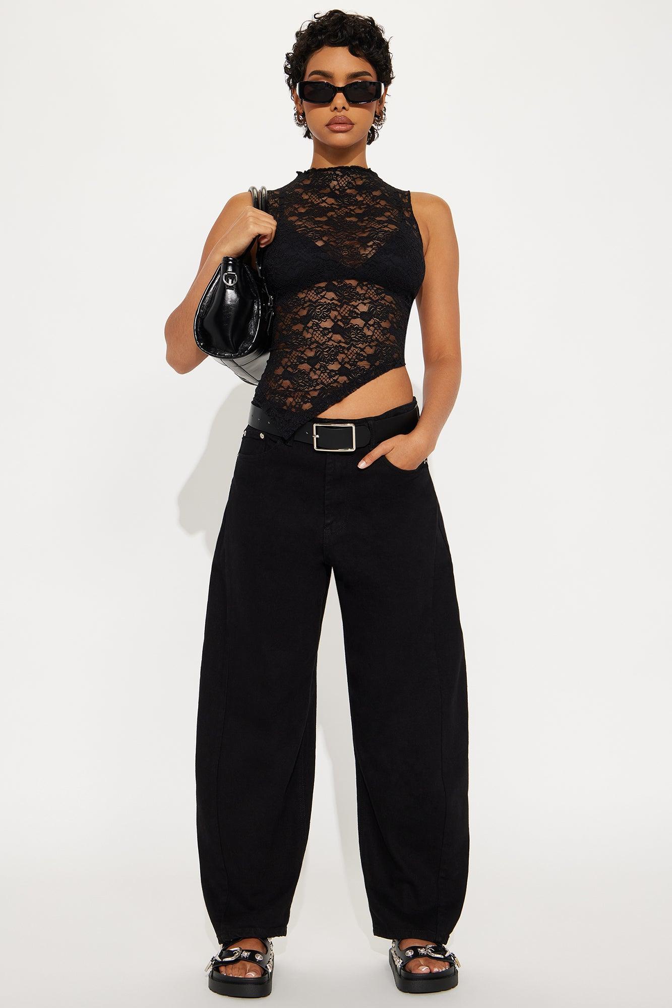 Vickie Sheer Lace Asymmetrical Top - Black Female