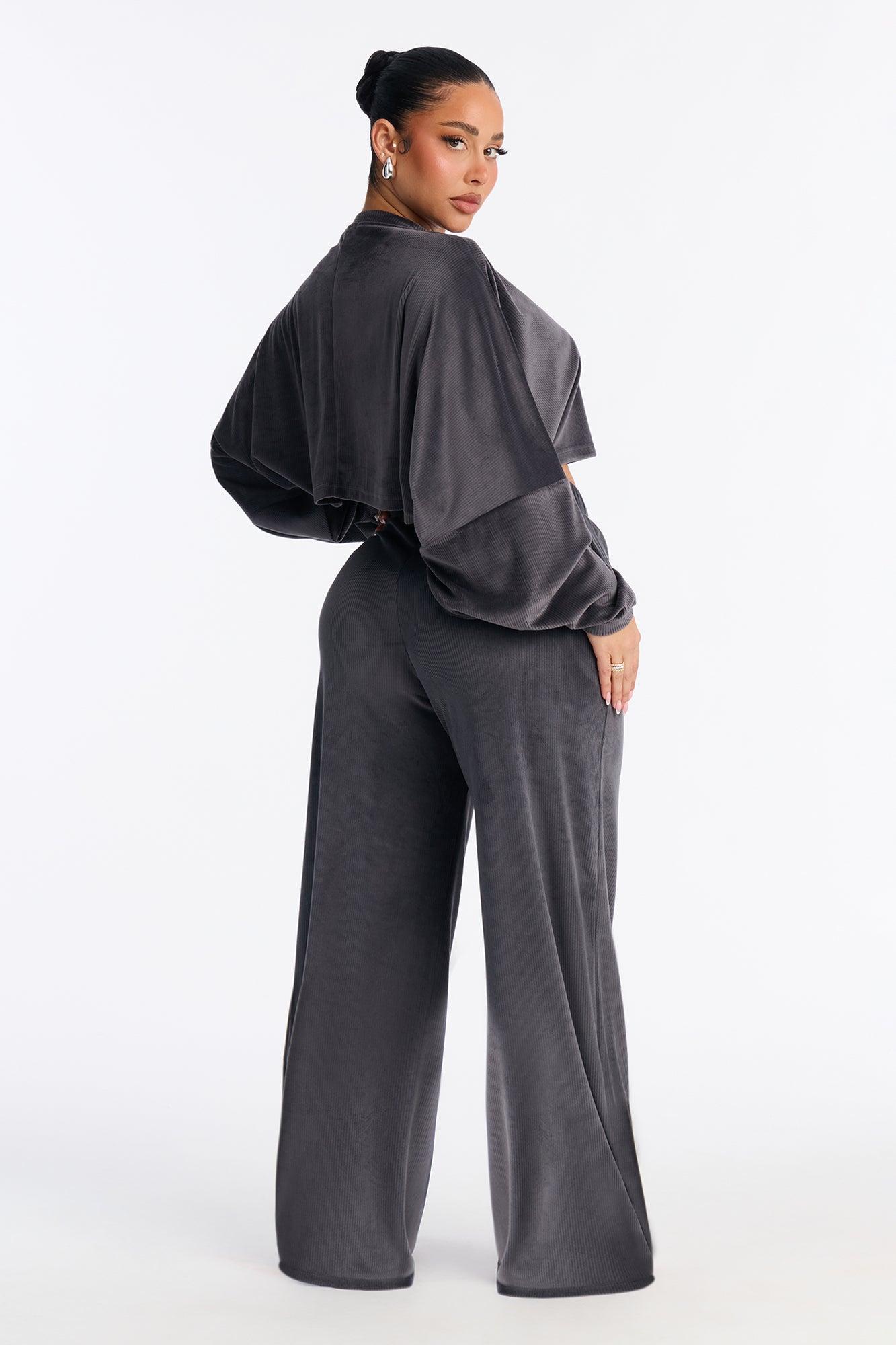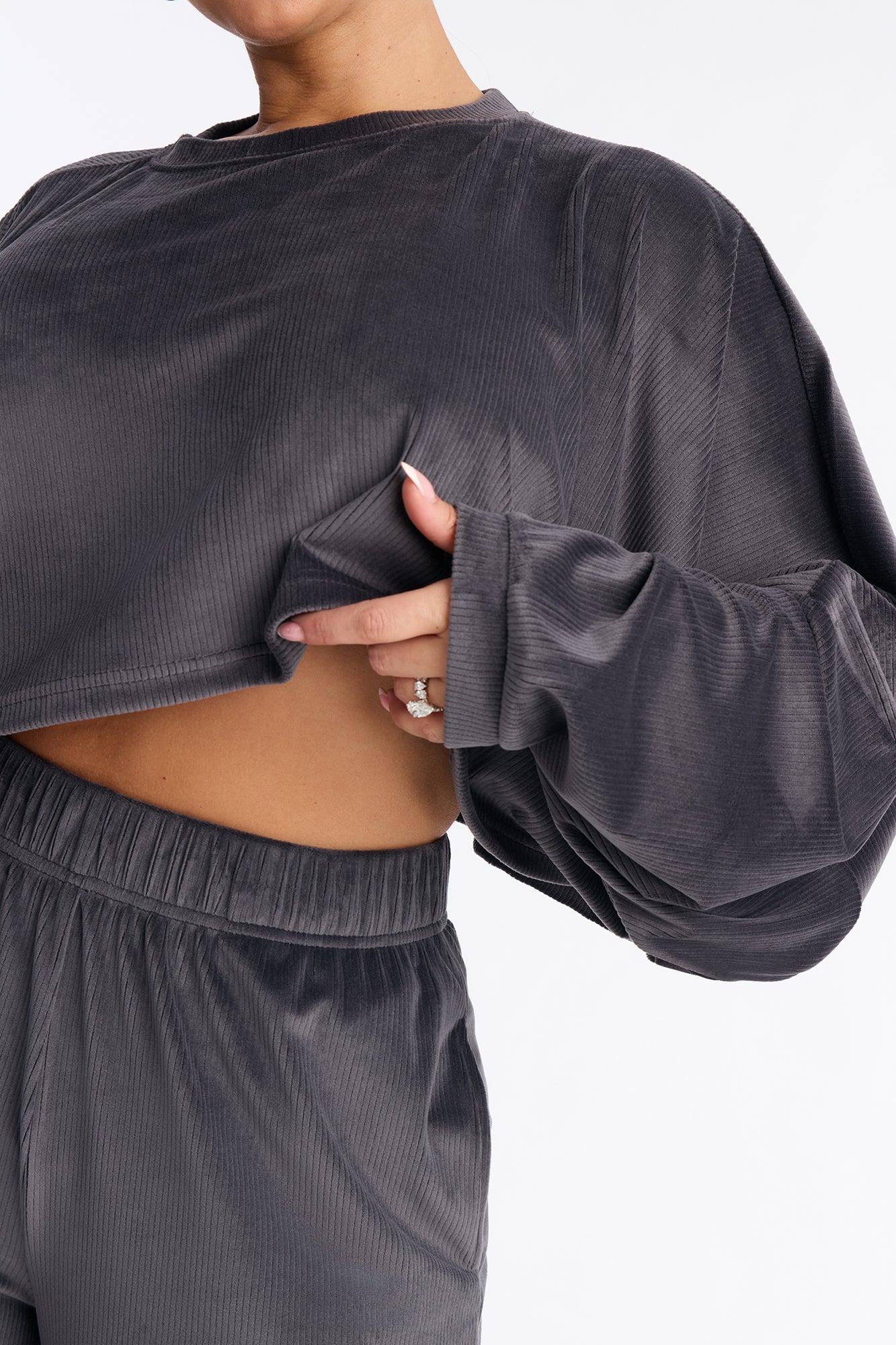 Vicky Ribbed Cropped Sweatshirt Crewneck - Charcoal Female