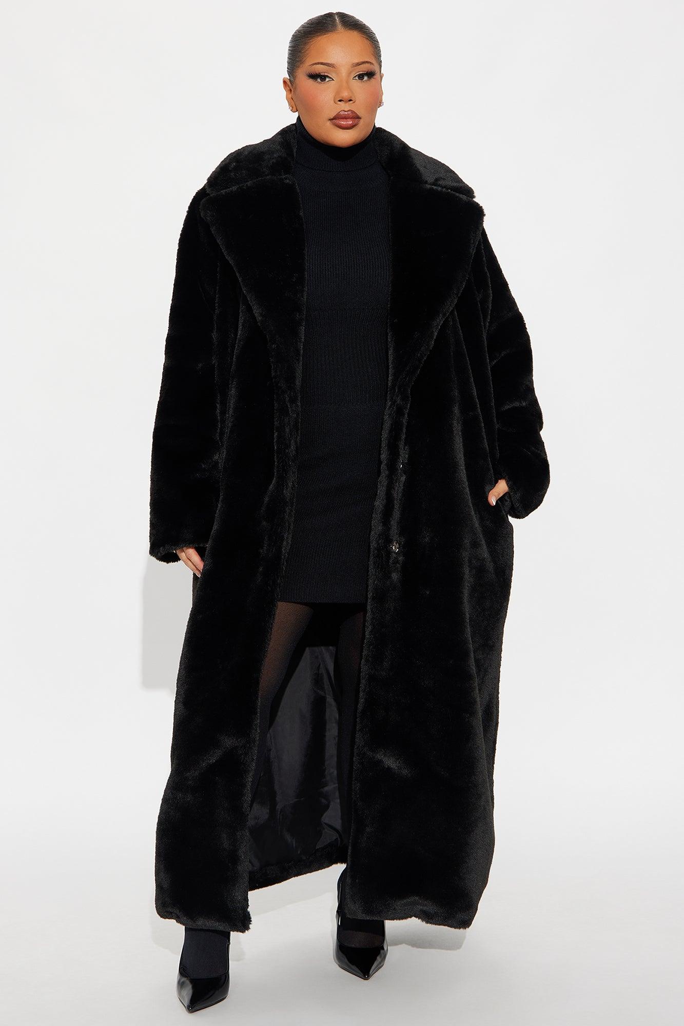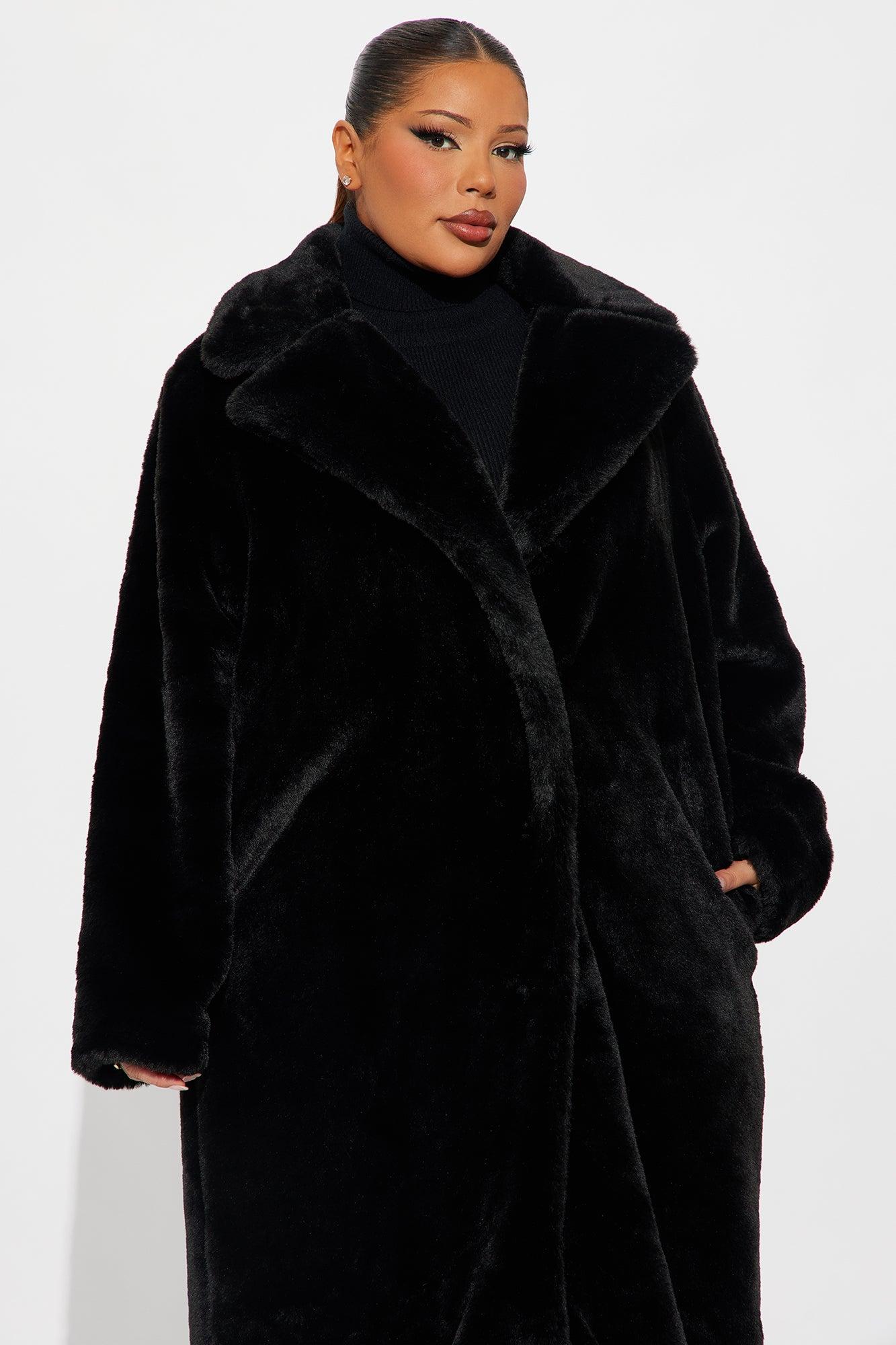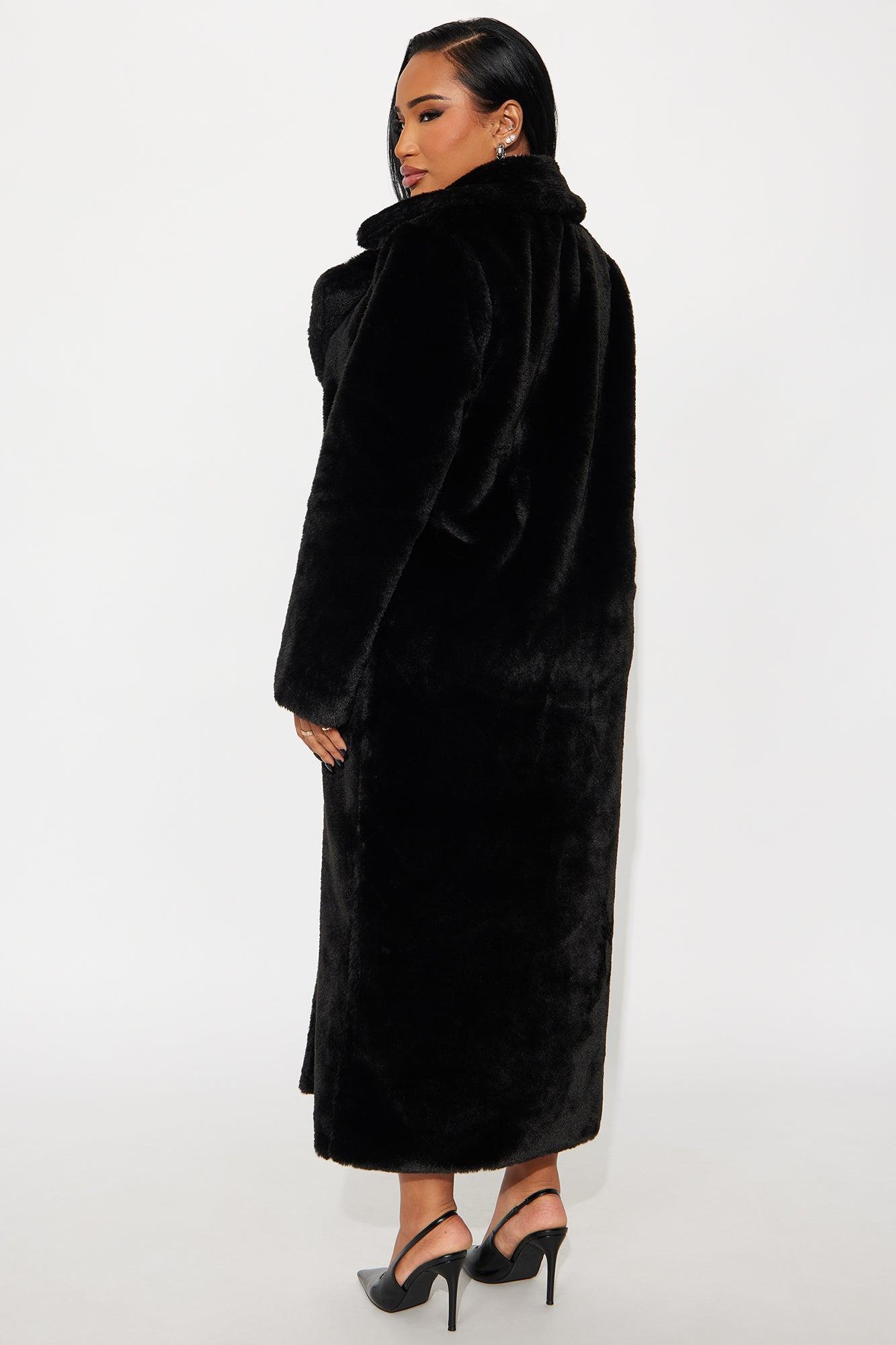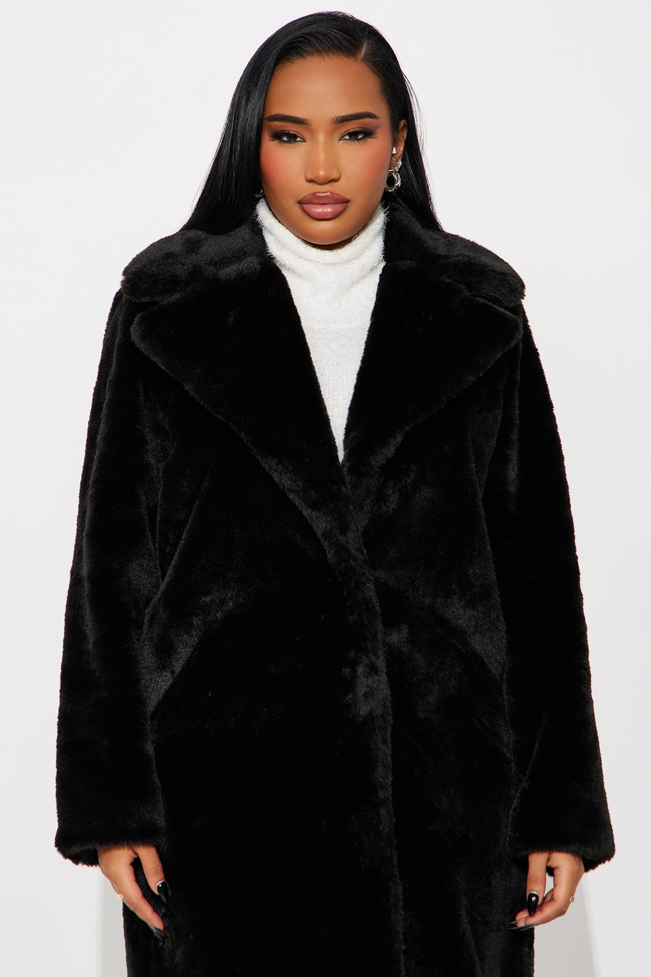 Victoria Faux Fur Trench Coat - Black Female
