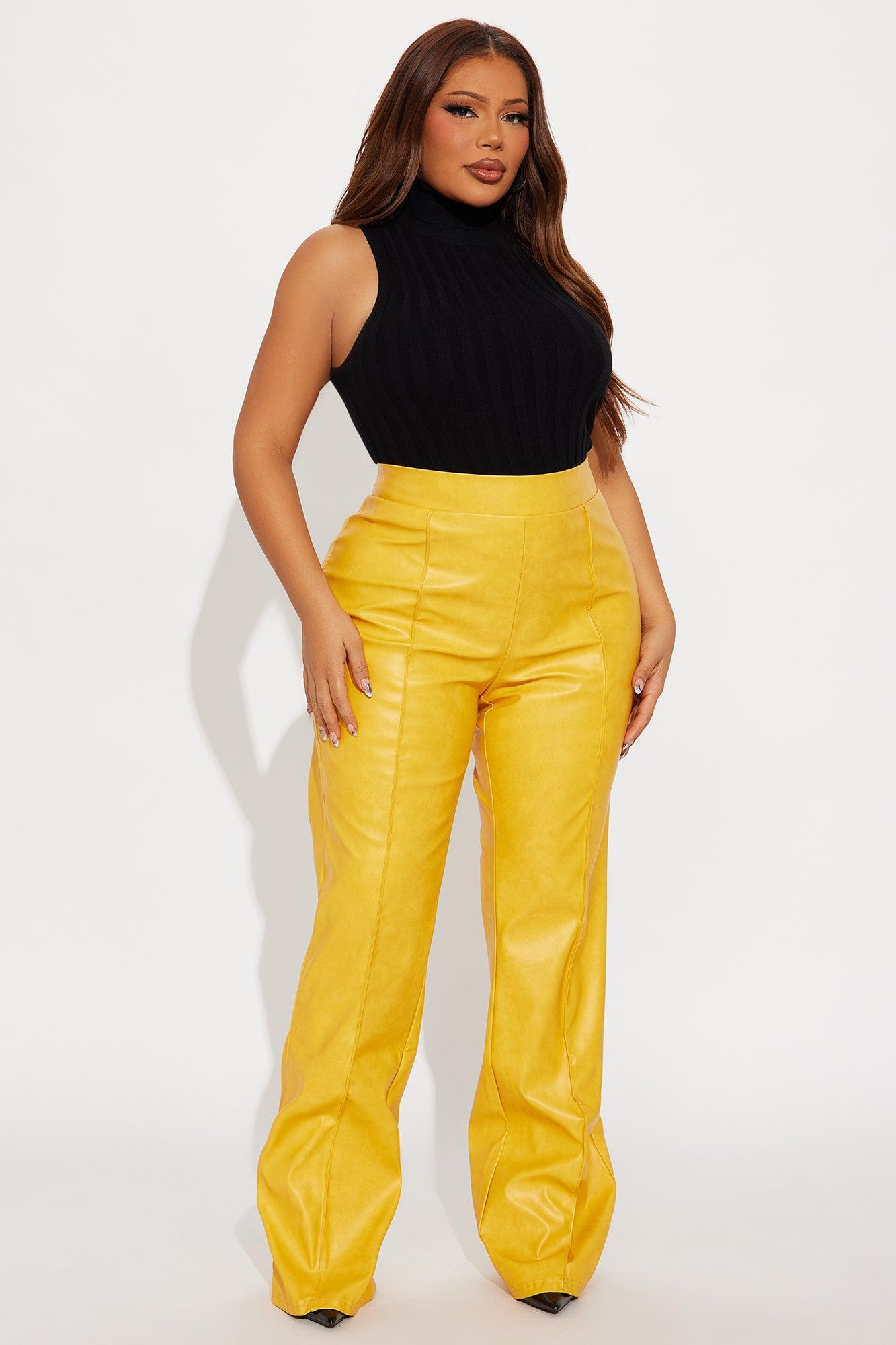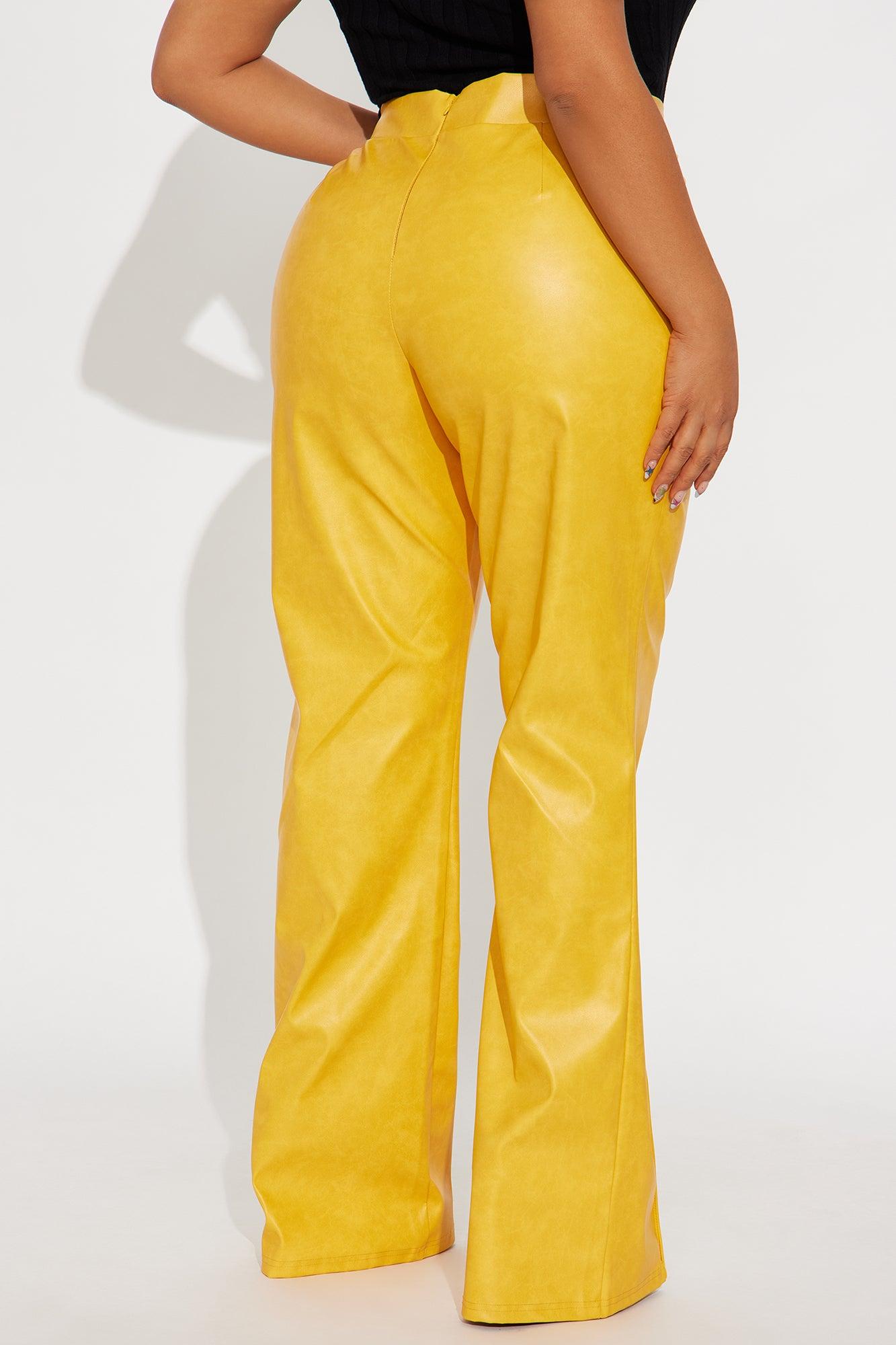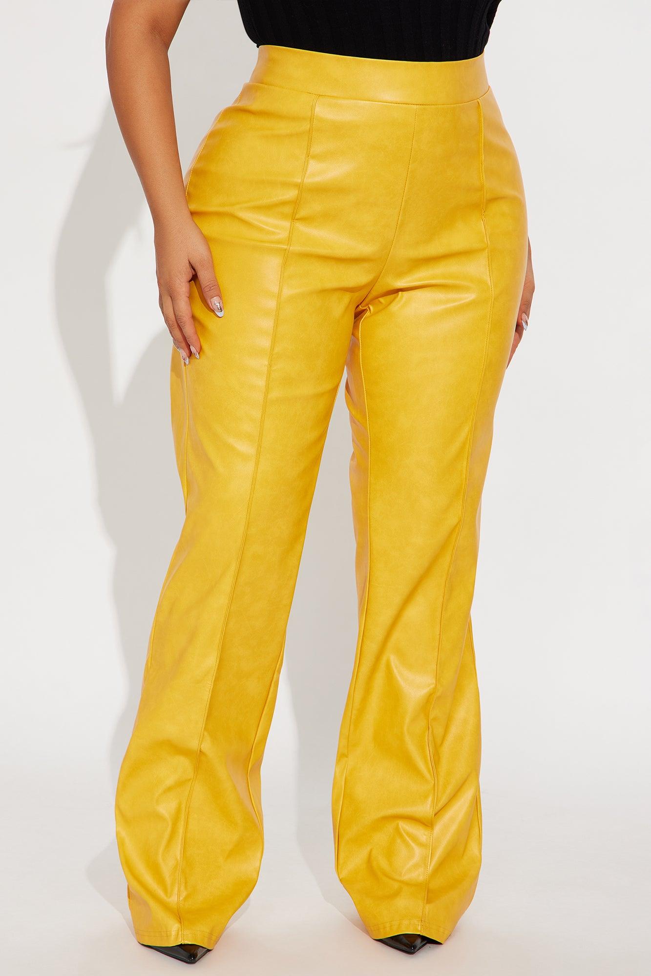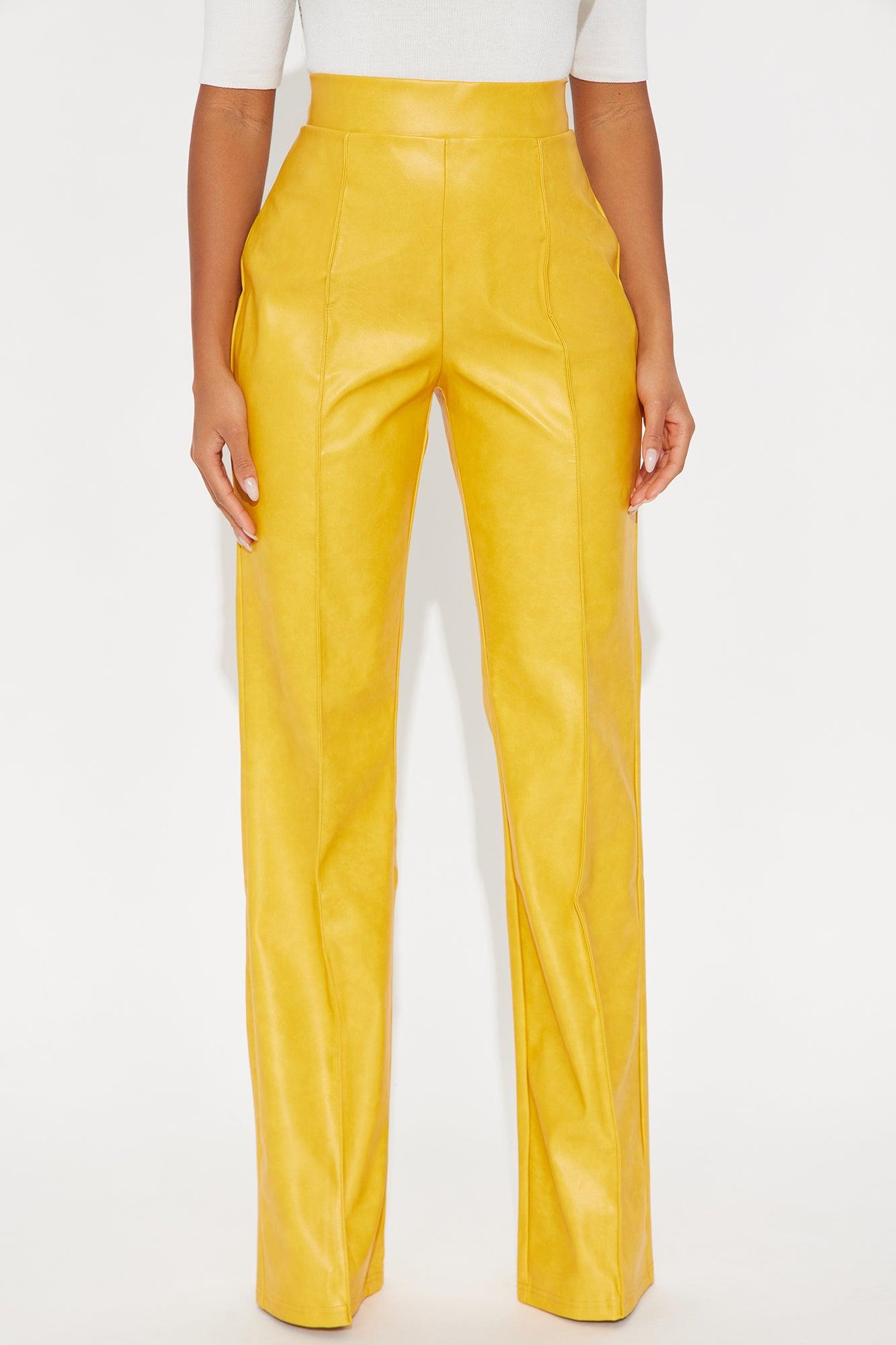 Victoria High Waisted Washed Faux Leather Dress Pants - Mustard Female