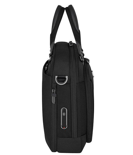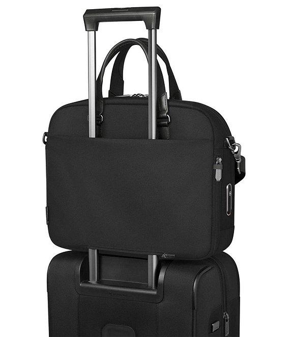 From the Werks Traveler Collection by Victorinox, this compact briefcase features: Werks Traveler 7.0, Compact Briefcase, Black Enjoy the next generation of business travel with the Werks Traveler 7.0 Compact Briefcase. Fastidiously designed to maximize storage space and integrating dedicated business organization, the Compact Briefcase is designed for comfort and practicality. With its antimicrobial lining to preserve the integrity of business valuables, you can pack it, grab it and move between meetings, trade shows and travel. Polyester Compact Briefcase offers elevated business organization for the frequent traveler Secure essential business and personal items using the dedicated business organization External zippered pocket Access everything with ease thanks to the U-shaped expandability feature The Compact Briefcase is designed for comfort as well as practicality Removable shoulder strap Top handle to cater to longer trips and cramped environments Water resistant, highly durable and designed with a sleek, professional aesthetic Laptop 14" Measures: 11.4" H x 5.9" L x 15" W Weight 2 lbs. Imported.