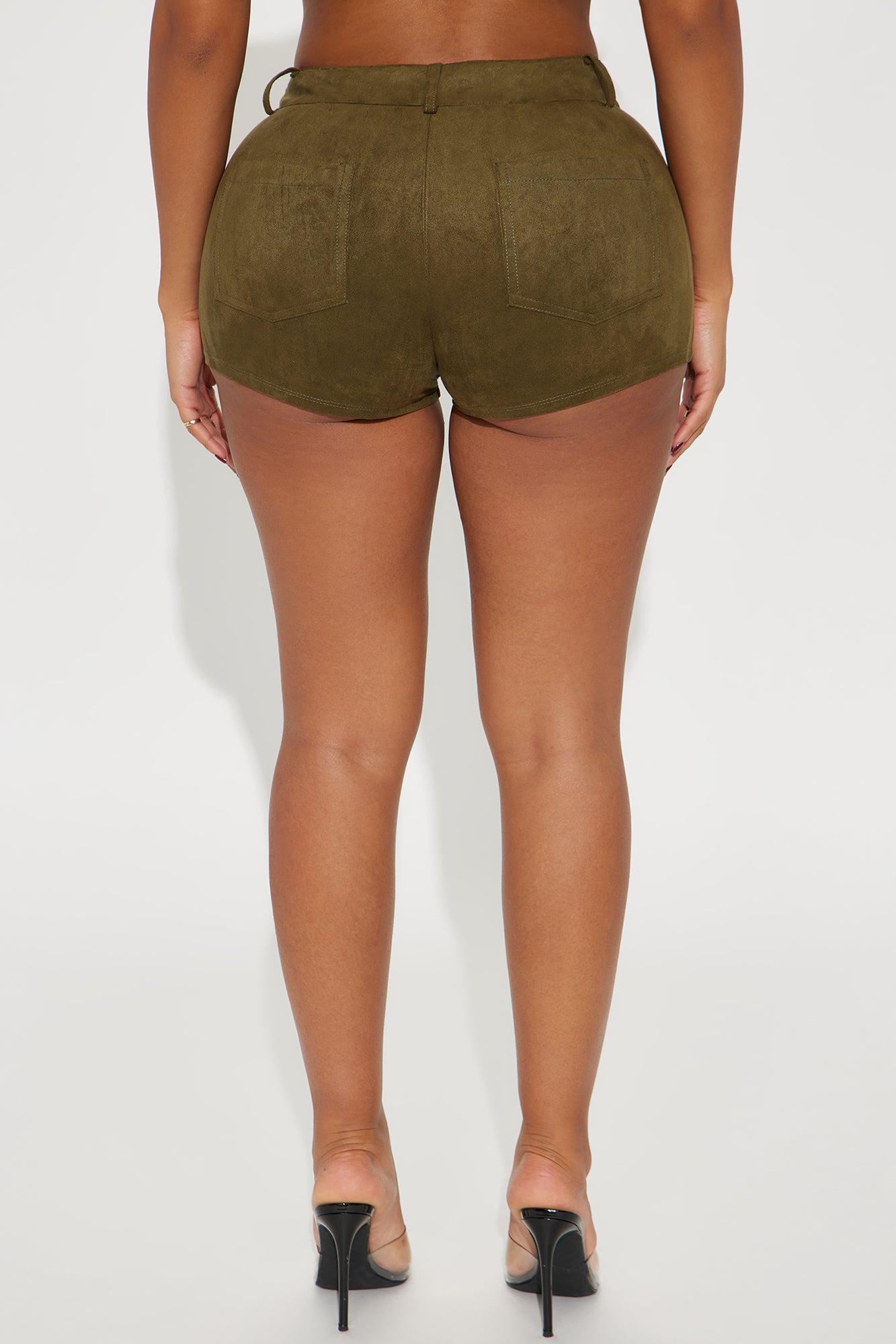Vida Faux Suede Micro Trouser Short - Olive