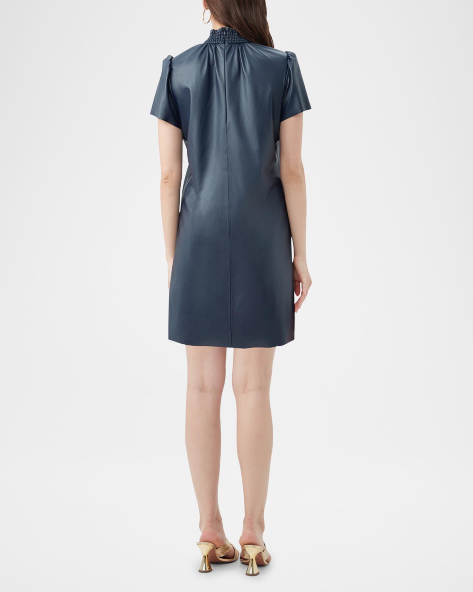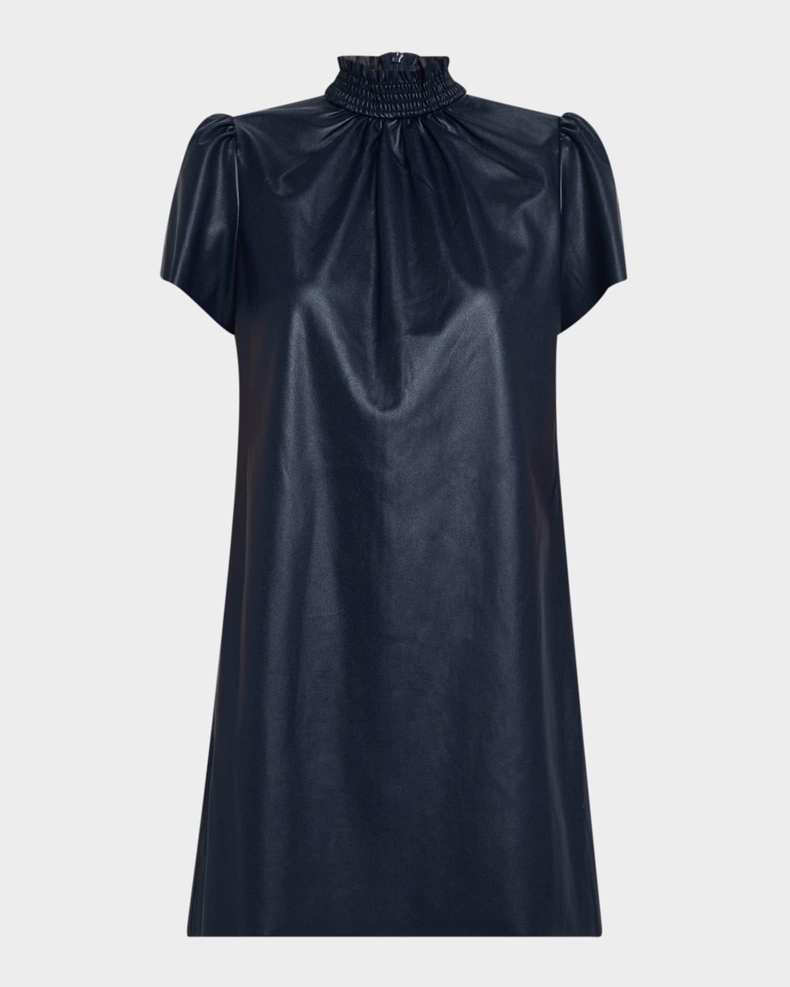 Vida Smocked Mock-Neck Faux Leather Mini Dress