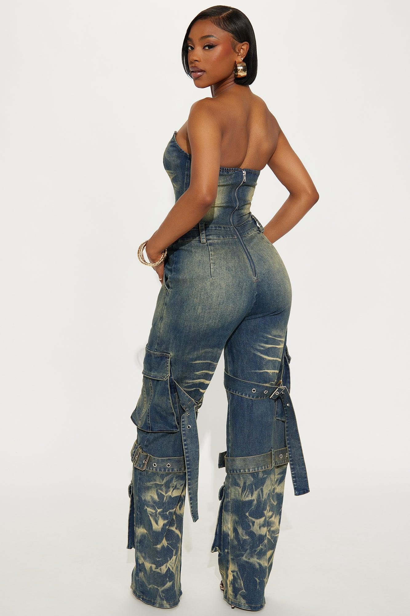 Available In Medium Wash. Jumpsuit Back Zip Closure Wide Leg Stretch Inseam = 33" Disclaimer: Due To The Specialized Dye And Printing Process A Difference In Saturation May Occur. Each Garment Is Unique Self: 97% Cotton 3% Spandex Imported California Proposition 65WARNING: Cancer and Reproductive Harm - www.P65Warnings.ca.gov.