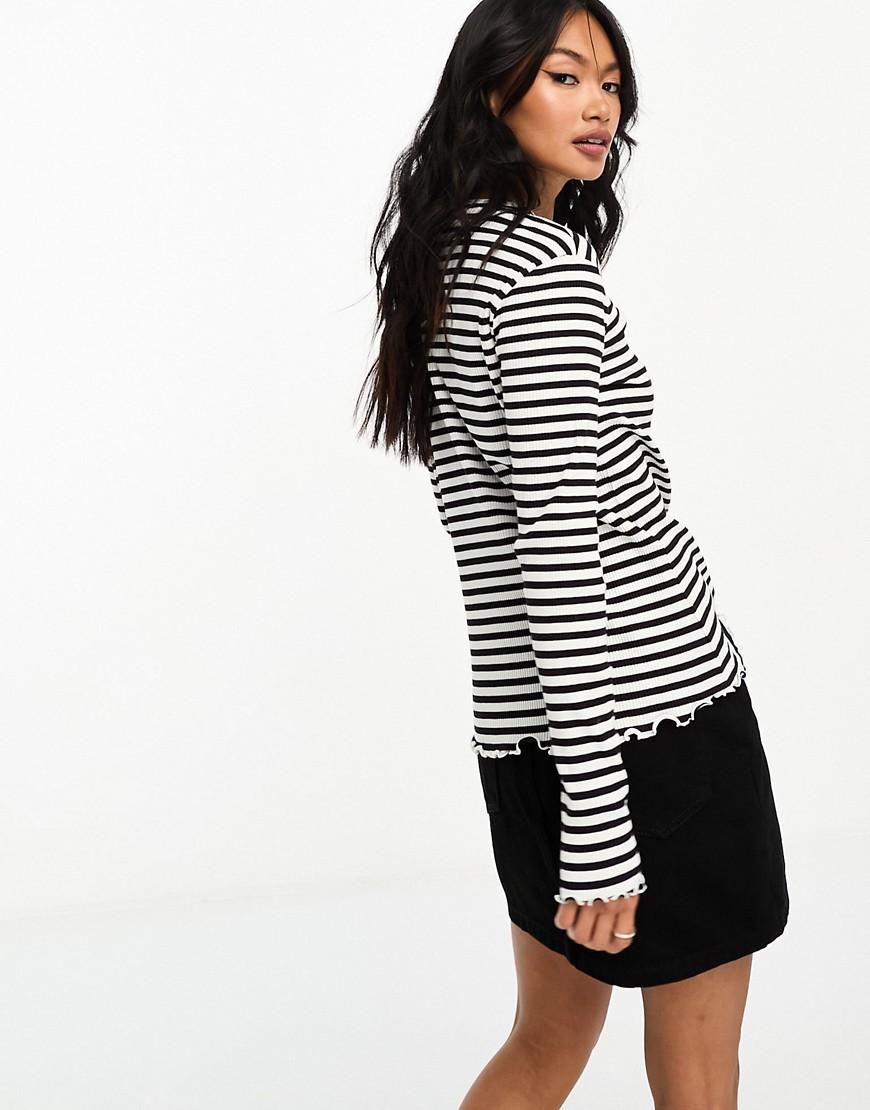 Vila lettuce edge long sleeved ribbed top stripe