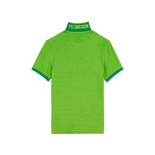 For practical day-time wear, this polo offers sophistication with its ribbed cuffs and collar and iconic turtle embroidered on the chest Cotton Pique polo with ribbed cuffs an collar Short sleeve with no buttons on front placket Tone on tone embroidery turtle Logo on chest and printed "Vilebrequin" logo under collar center back Signature pair of eyelets Colour changing thread worked into the contrasts of the collar Middle back Length for a size M: 27.75" Men Polo Men Polo Solid 100% Organic Cotton