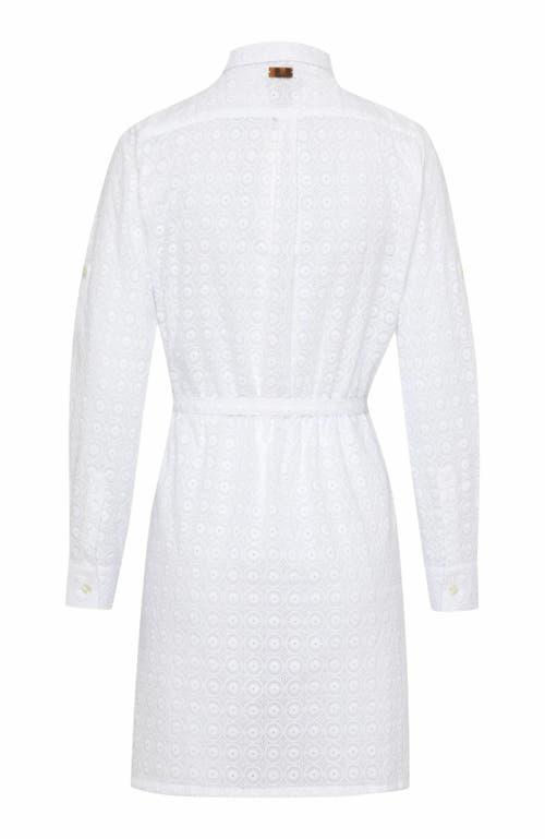 Delicate Broderie Anglaise gives this shirt dress a sophisticated aura. Crafted from cotton, a tie belt and the Vilebrequin 'turtle shell' plaque on the back add a refined touch. Women Dress Shirt Long sleeves and mid-length Tone on tone embroidered Turtle on left bottom hem Belt to be tied Middle back length for a size S: 35.82" Women Shirt dress Women Shirt dress 100% cotton