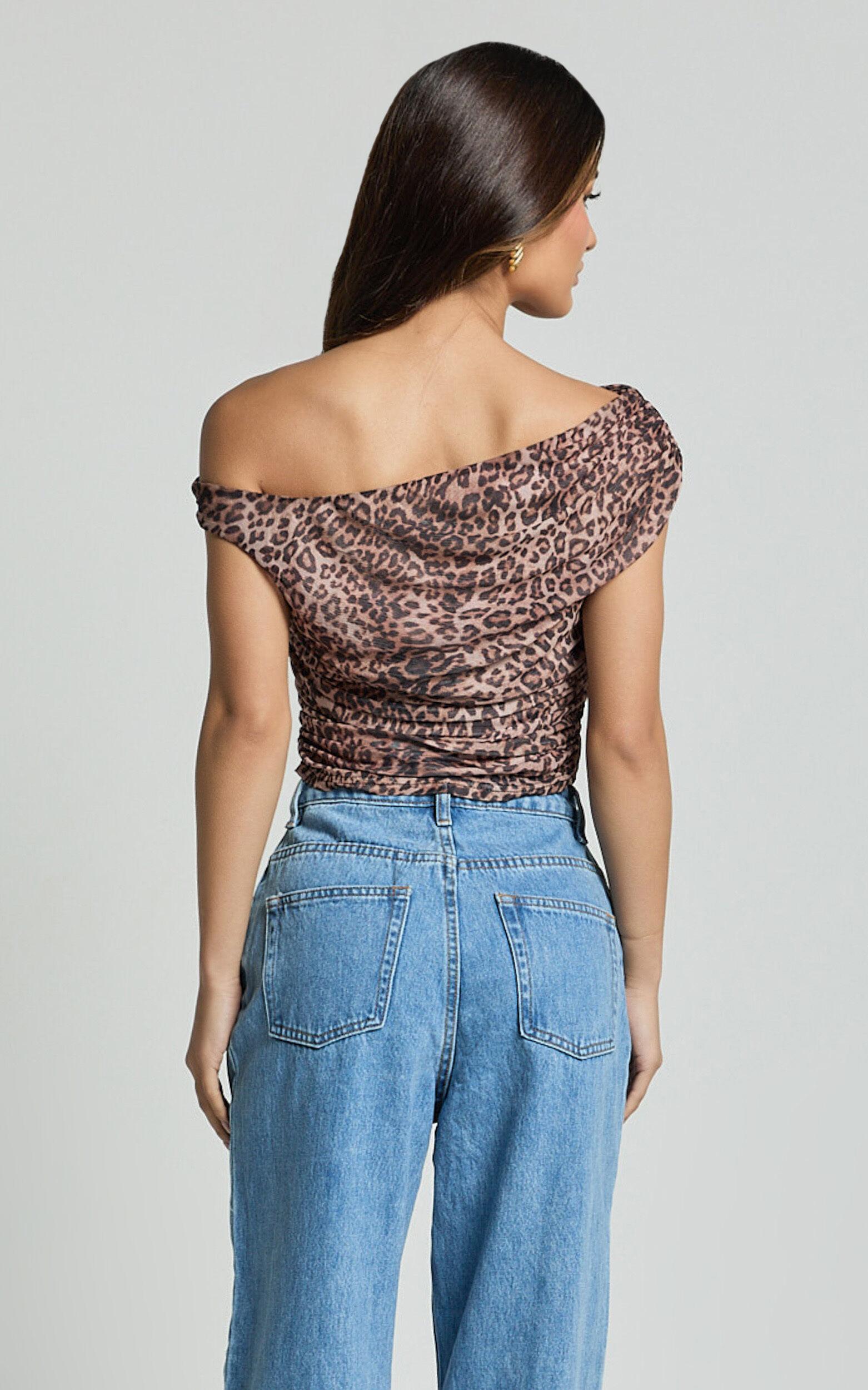 Get ready to turn heads in the Vilma Top - a stunning off-shoulder gathered mesh top in an eye-catching leopard print. Embrace your unique style and make a bold statement with this fashion-forward piece. Whether you're planning to hit the hottest party in town or looking for that perfect outfit that blends unique charm with a hint of wild, the Vilma Top is your go-to choice.Product Details:Inner LiningPull on styleMesh fabricAsymmetrical necklineParty perfectStandard lengthOne shoulder sleevePolyester materialSize and FitSize S / 8 length: 50cm / 19.69inMaterial and CareMain Fabric: 95% Polyester, 5% Spandex Lining: 75% Nylon, 25% PolyesterHigh Stretch