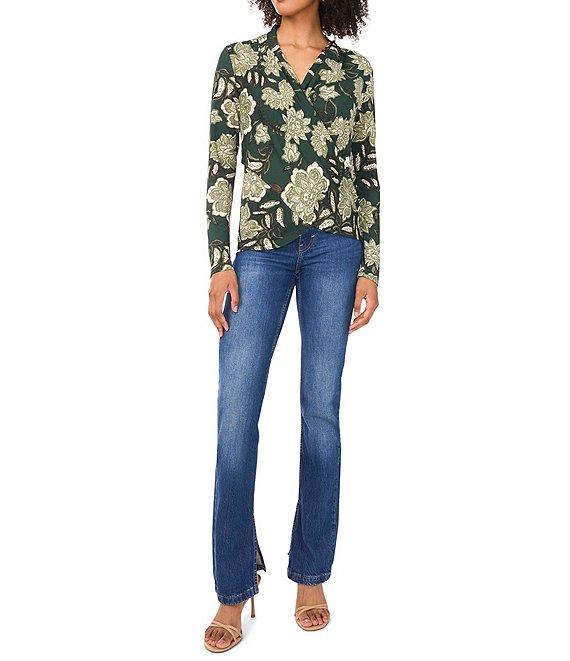 Vince Camuto Floral Knit Cowl V-Neck Long Sleeve Wrap Top