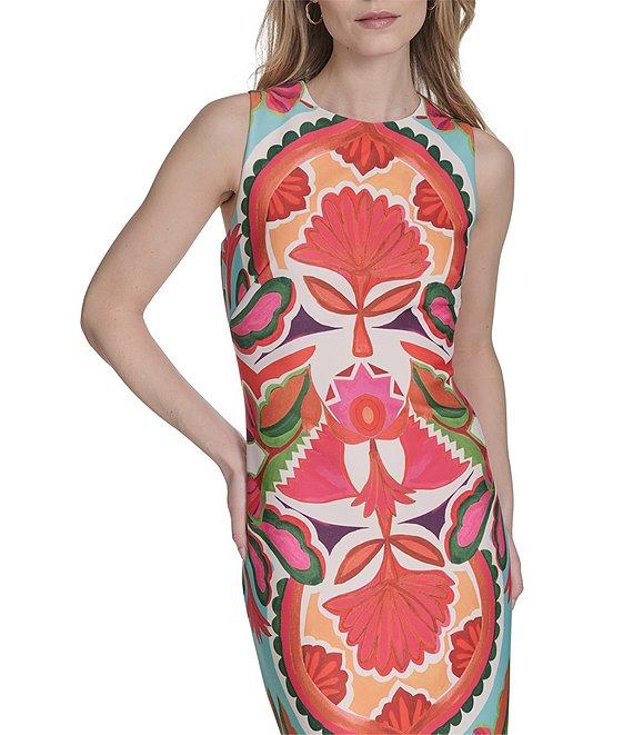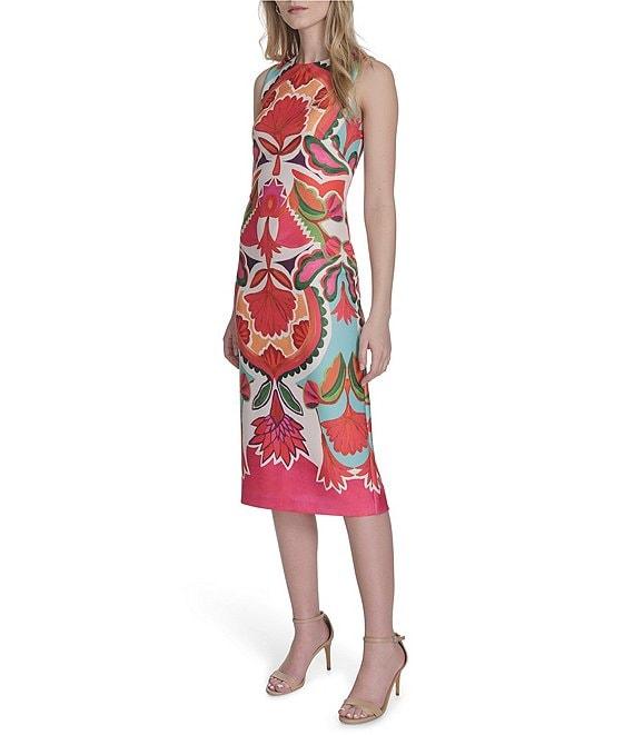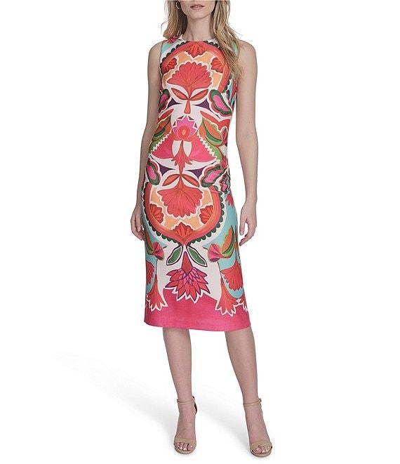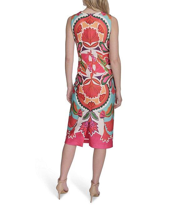 Vince Camuto Geo Print Boat Neck Sleeveless Midi Bodycon Midi Dress