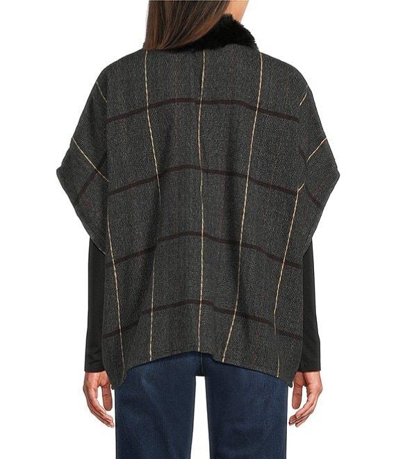 Vince Camuto Grid Plaid Topper with Fur Collar