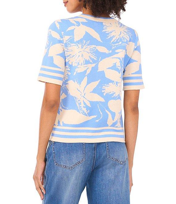 From Vince Camuto, this blouse features: Jacquard fabrication Round neckline Short sleeves Boxy fit Pullover construction Cotton Machine wash Imported.