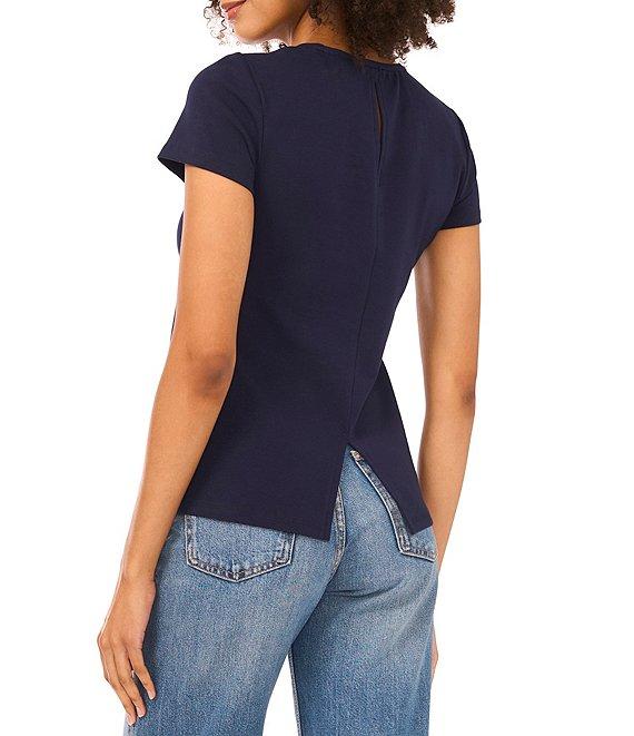 Vince Camuto Knit Back Vent Crew Neck Short Sleeve Tee