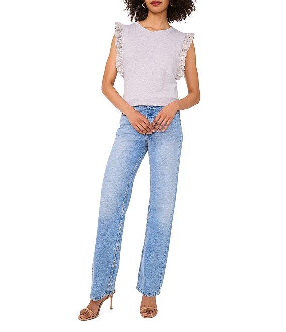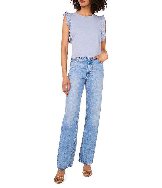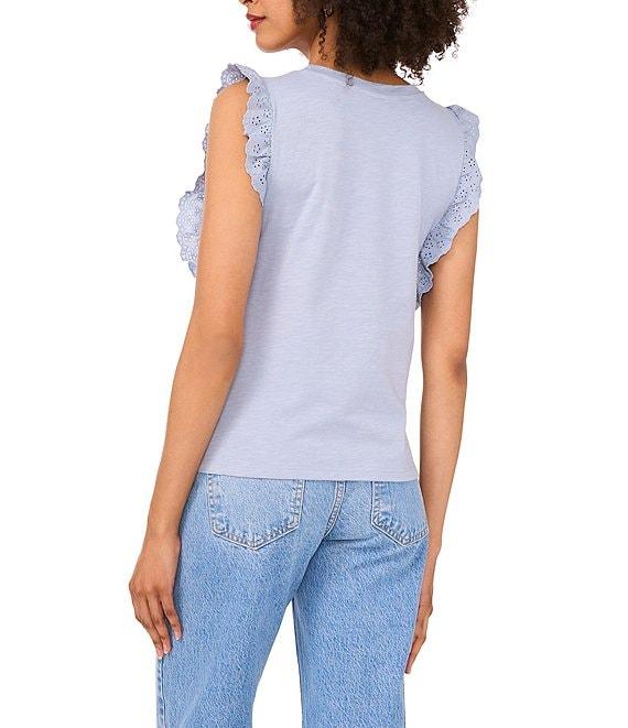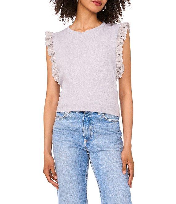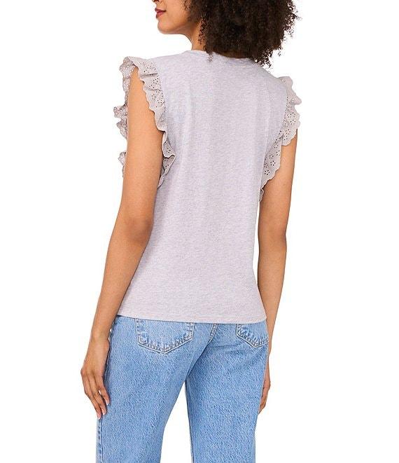 Vince Camuto Knit Crew Neck Ruffle Sleeve Eyelet Trim Tee