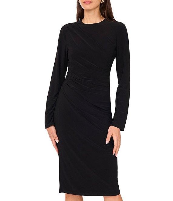 From Vince Camuto, this dress features: Knit fabrication Mock neckline Long sleeves Pullover construction Approx. 48" in length Polyester/spandex Machine wash Imported.