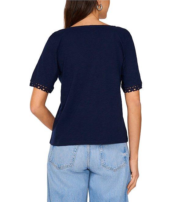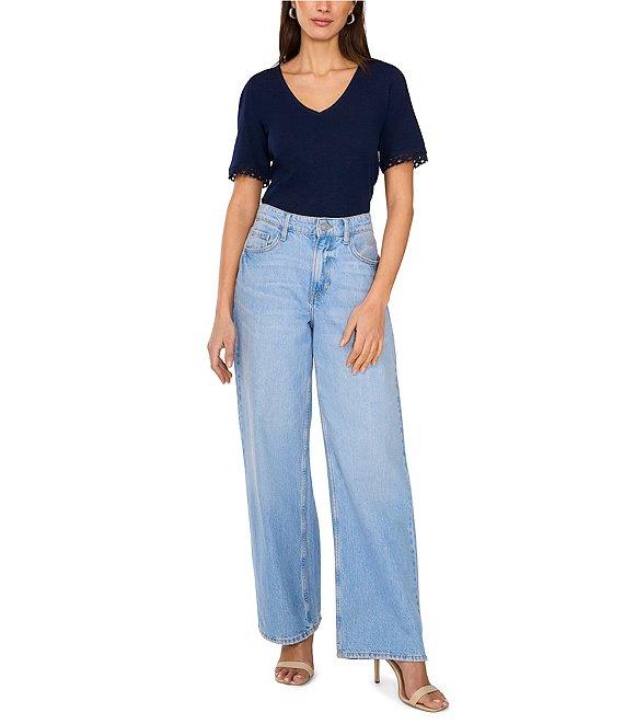 Vince Camuto Knit V-Neck Short Sleeve Trim Tee