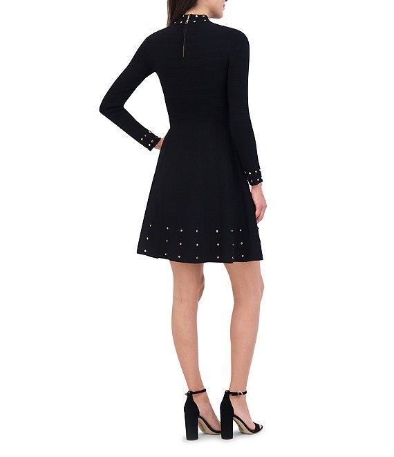 Vince Camuto Long Sleeve Mock Neck Studded Fit And Flare Dress