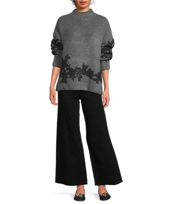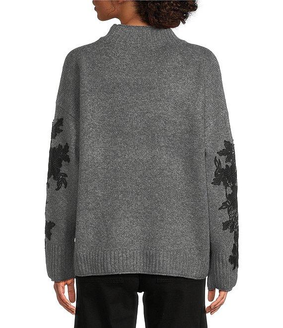 Vince Camuto Mock Neck Long Sleeve Floral Applique Sweater