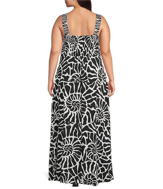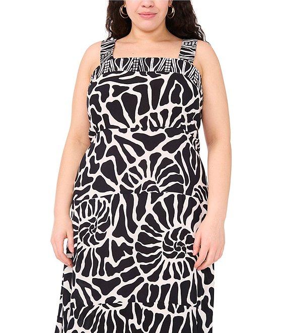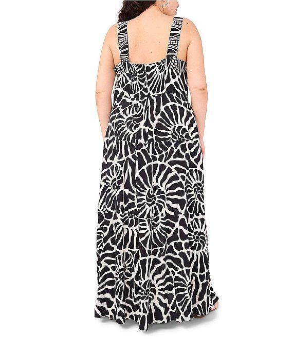 Vince Camuto Plus Size Abstract Printed Woven Square Neck Sleeveless Tiered Maxi Shift Dress