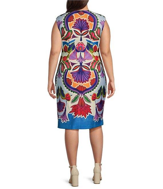 Vince Camuto Plus Size Printed Boat Neck Cap Sleeve Bodycon Dress