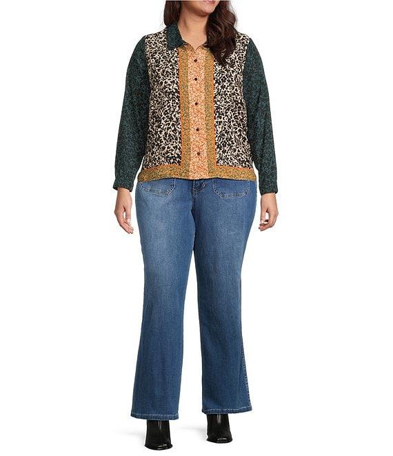 Vince Camuto Plus Size Stretch Denim Wide Leg Patch Pocket Jeans