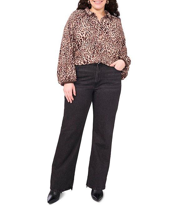 Vince Camuto Plus Size Woven Cheetah Print V-Neck Long Sleeve Shirt