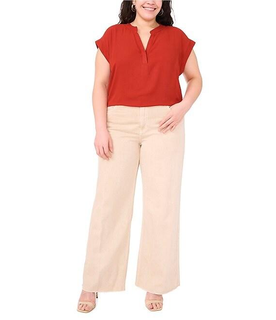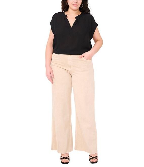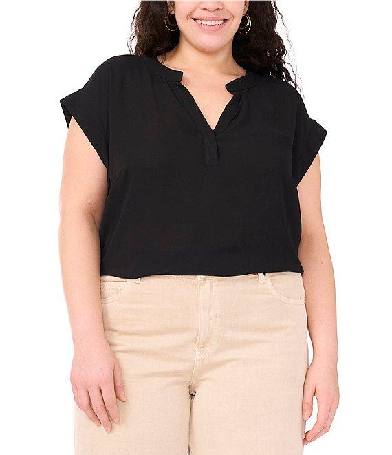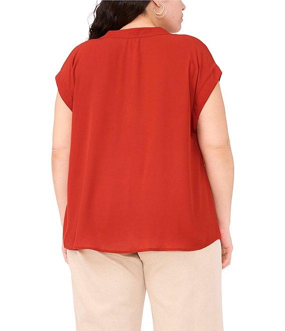 Vince Camuto Plus Size Woven V-Neck Short Sleeve Blouse
