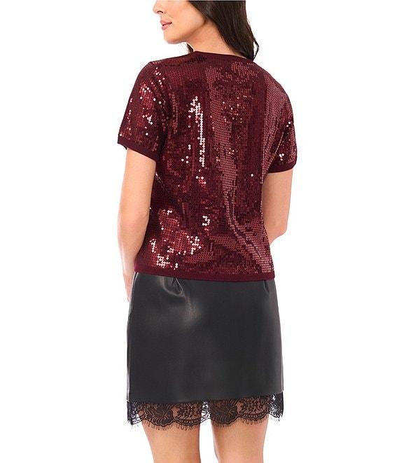 Vince Camuto Sequin Coordinating Crew Neck Short Sleeve Sweater