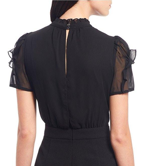 Vince Camuto Short Sleeve Mock Neck Chiffon Bodice Jumpsuit