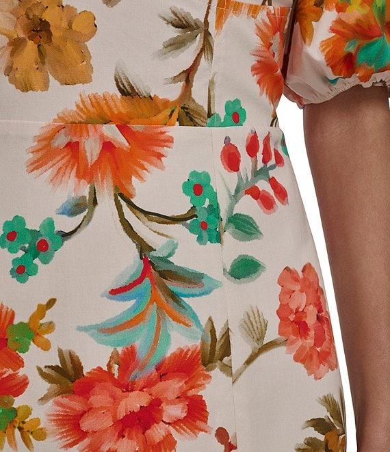 Vince Camuto Square Neck A Line Puff Sleeve Floral Print Midi Dress