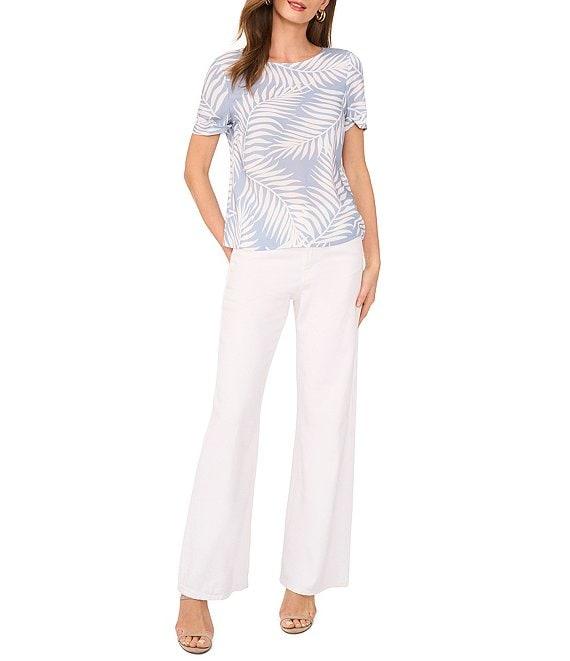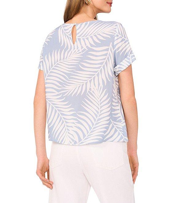 Vince Camuto Tropical Palm Print Woven Crew Neck Short Sleeve Blouse